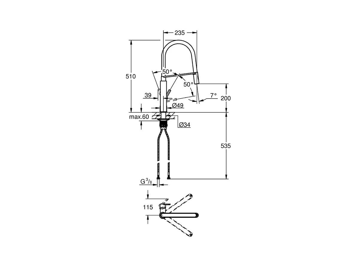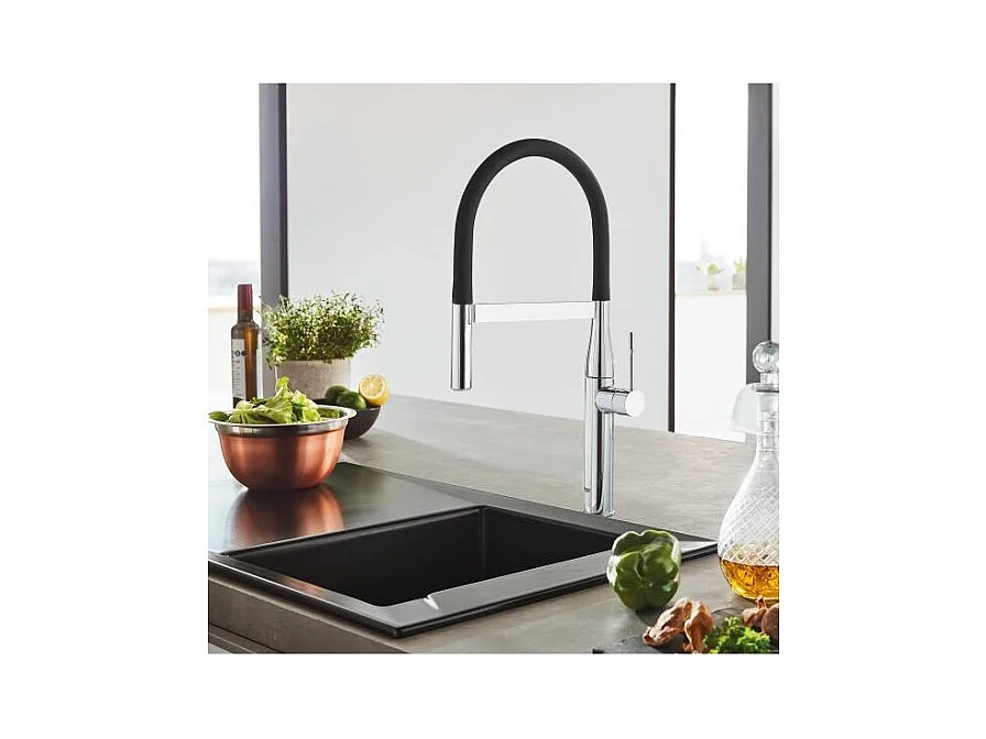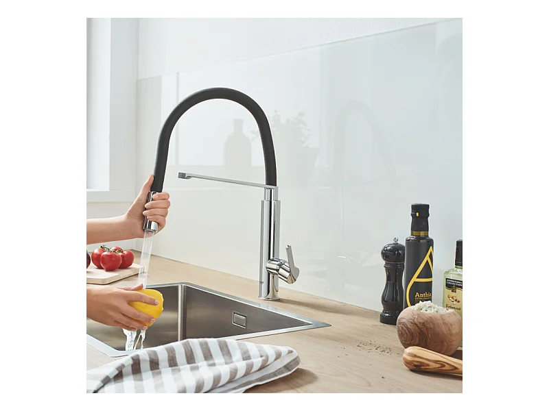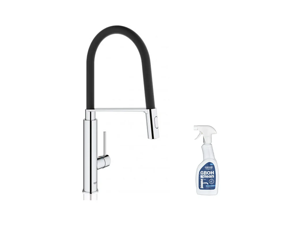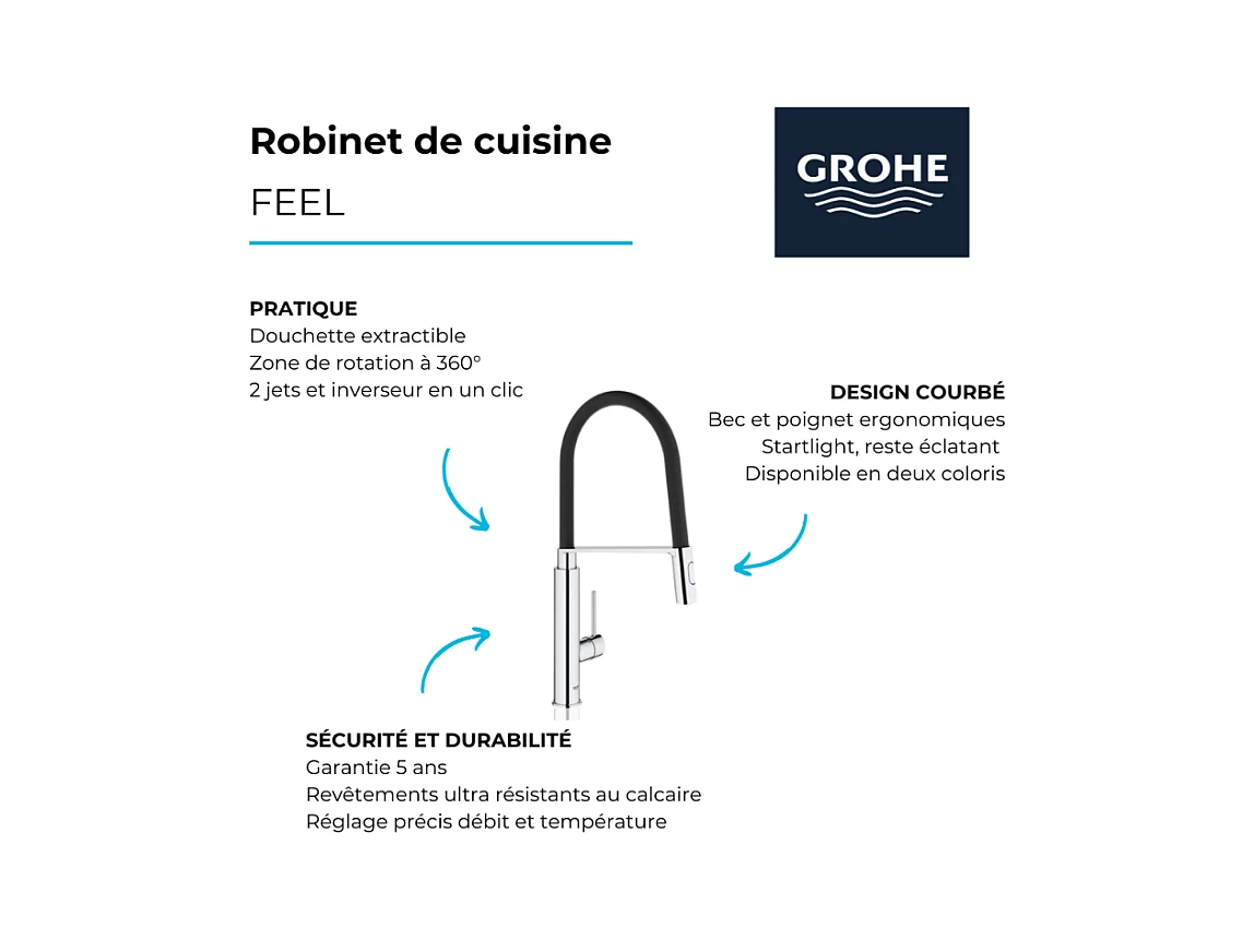 Robinet de cuisine avec douchette GROHE Feel Quickfix chromé + nettoyant GrohClean