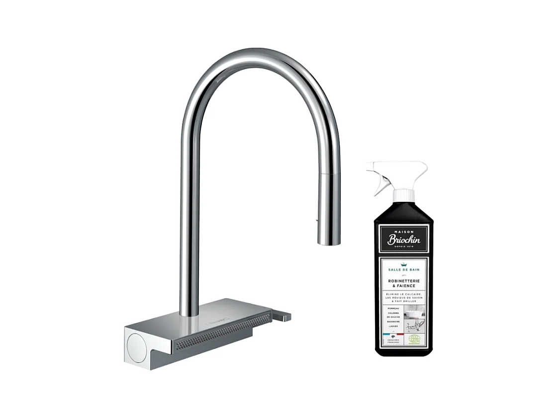 Robinet de cuisine avec douchette HANSGROHE Aquno Select M81 170 3 jets chromé + nettoyant Briochin