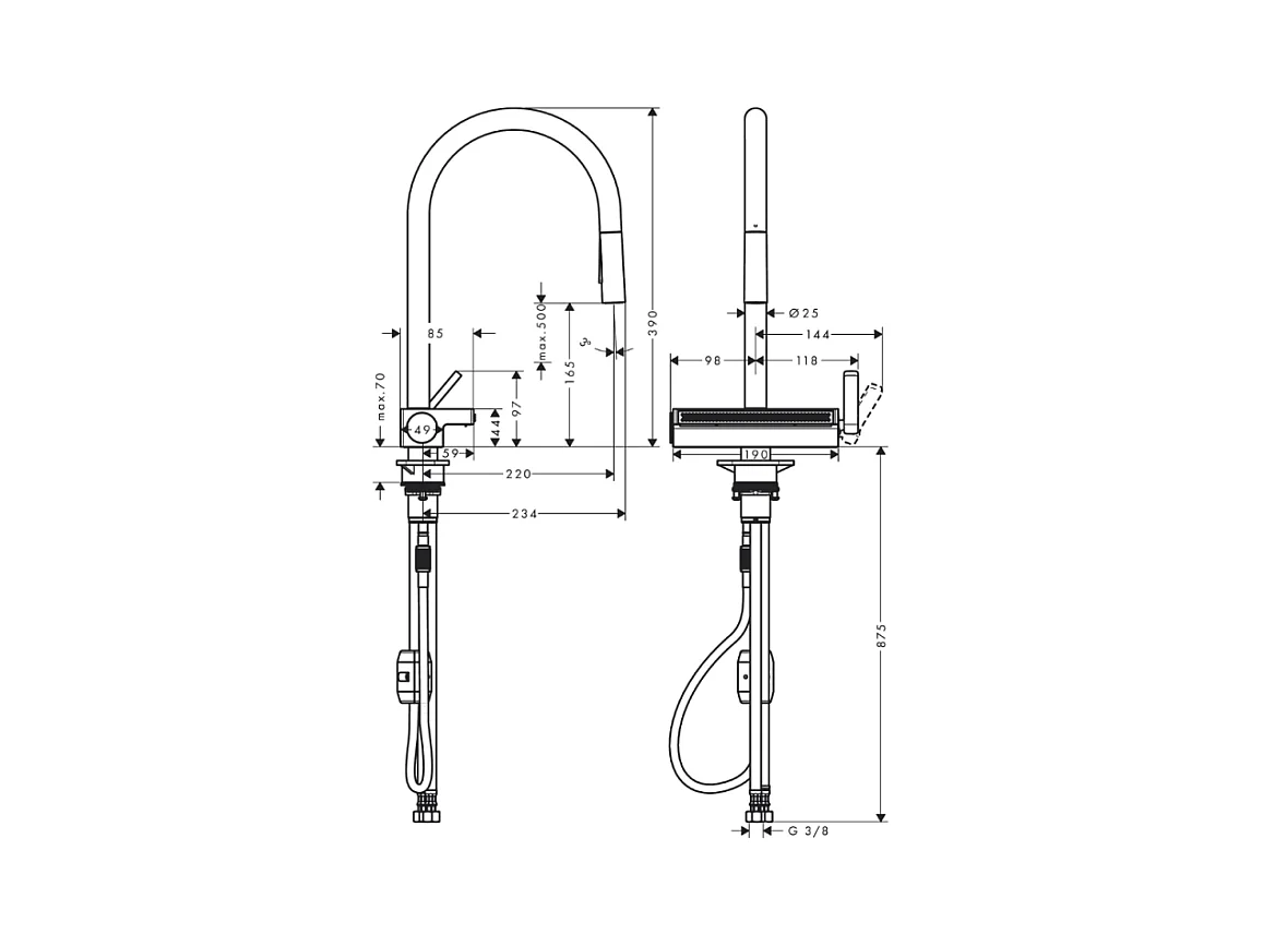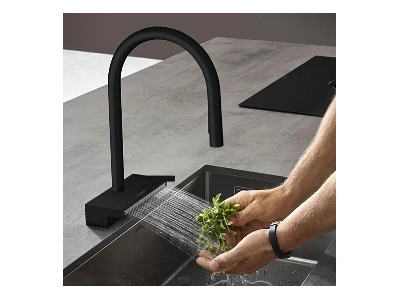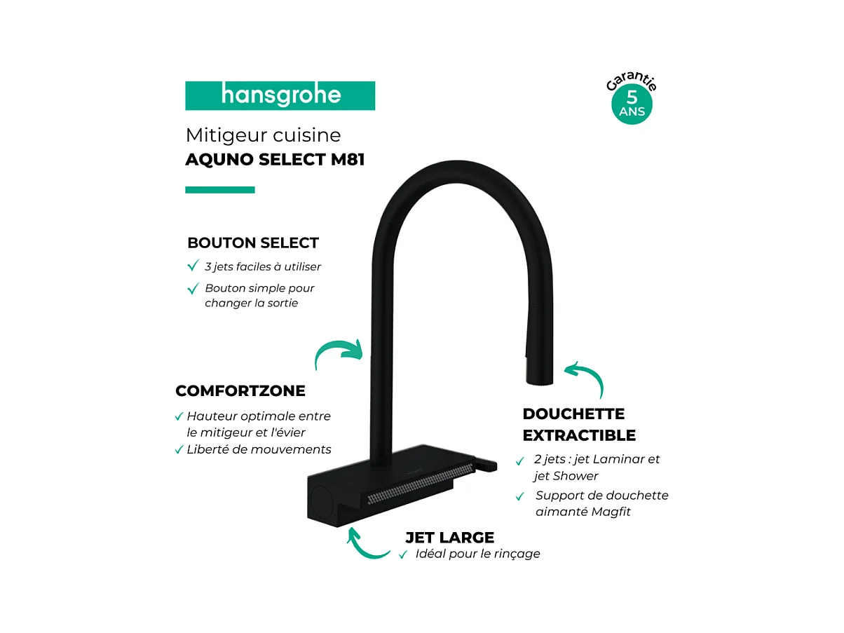 Robinet de cuisine avec douchette HANSGROHE Aquno Select M81 170 3 jets noir mat