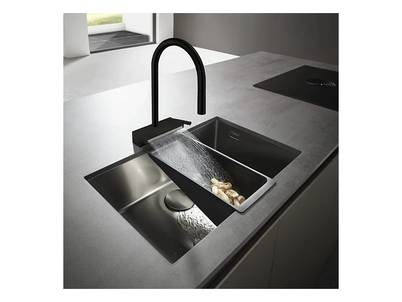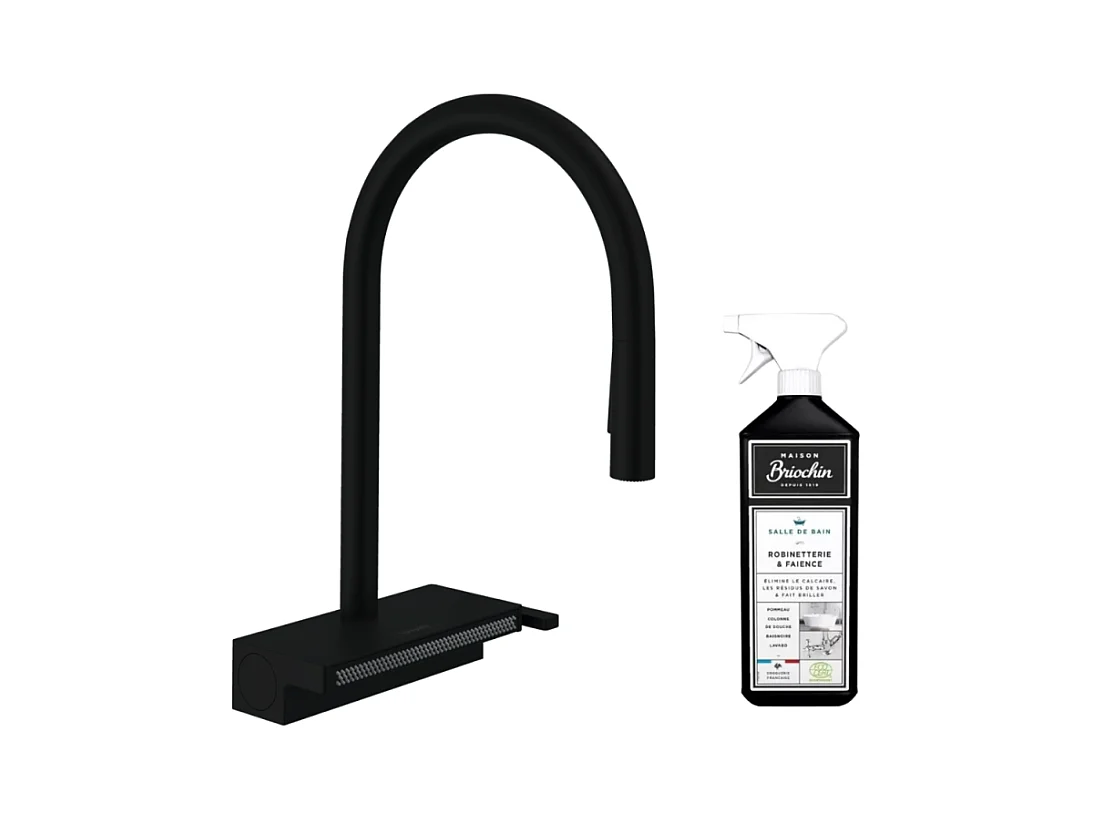 Robinet de cuisine avec douchette HANSGROHE Aquno Select M81 170 3 jets noir mat + nettoyant Briochin