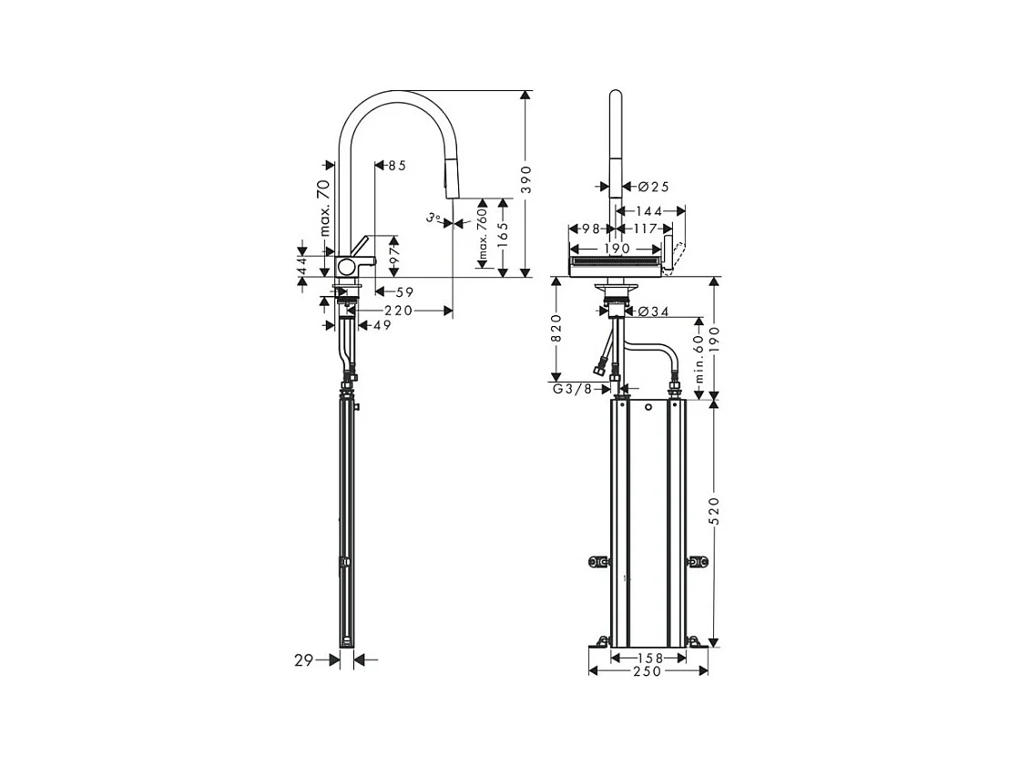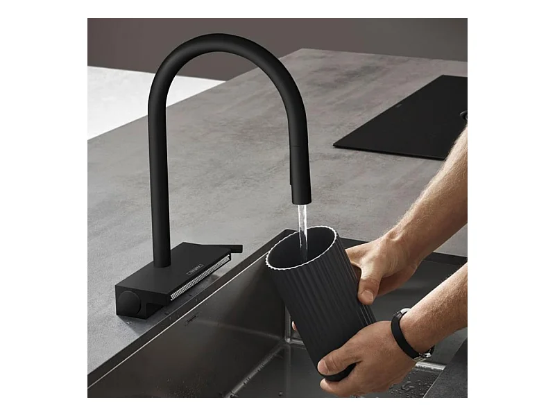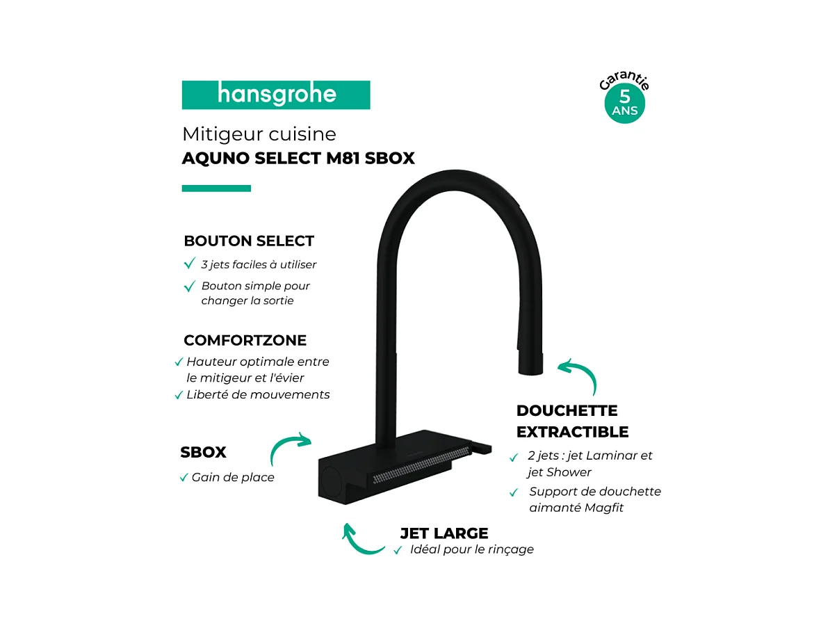 Robinet de cuisine avec douchette HANSGROHE Aquno Select M81 170 sBox 3 jets noir mat
