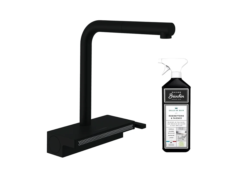 Robinet de cuisine avec douchette HANSGROHE Aquno Select M81 250 2 jets noir mat + nettoyant Briochin
