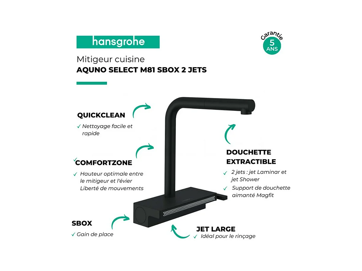 Robinet de cuisine avec douchette HANSGROHE Aquno Select M81 250 sBox 2 jets noir mat