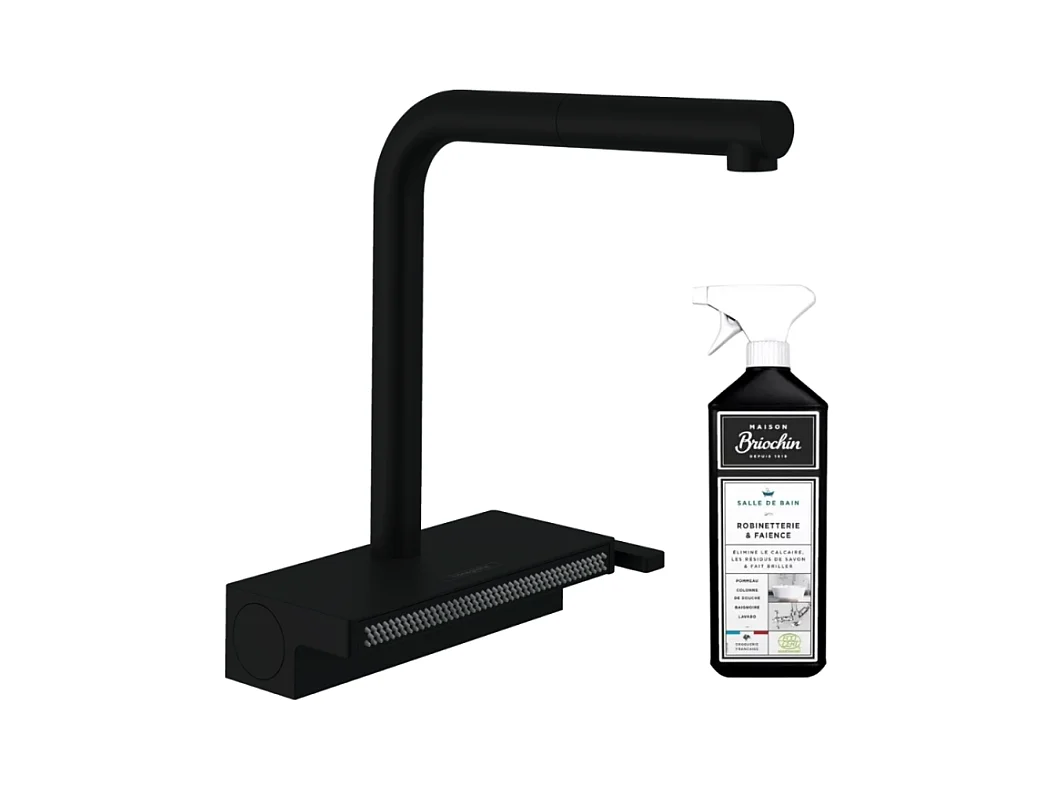 Robinet de cuisine avec douchette HANSGROHE Aquno Select M81 250 sBox 2 jets noir mat + nettoyant Briochin