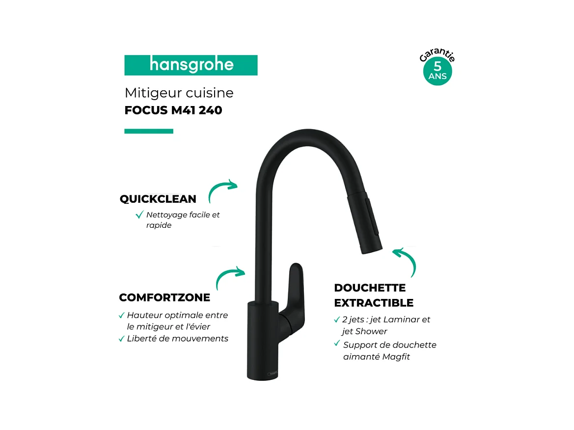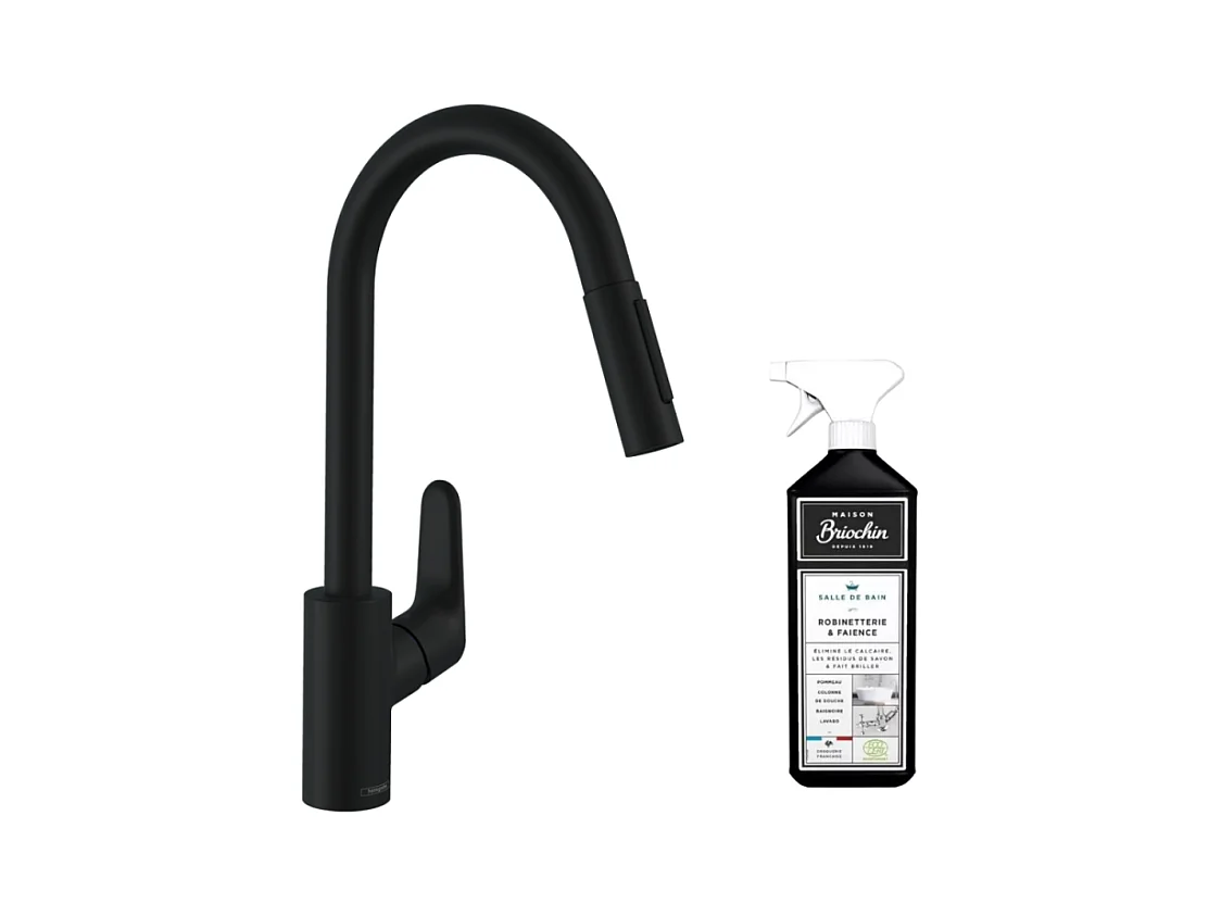 Robinet de cuisine avec douchette HANSGROHE Focus M41 240 2 jets noir mat + nettoyant Briochin