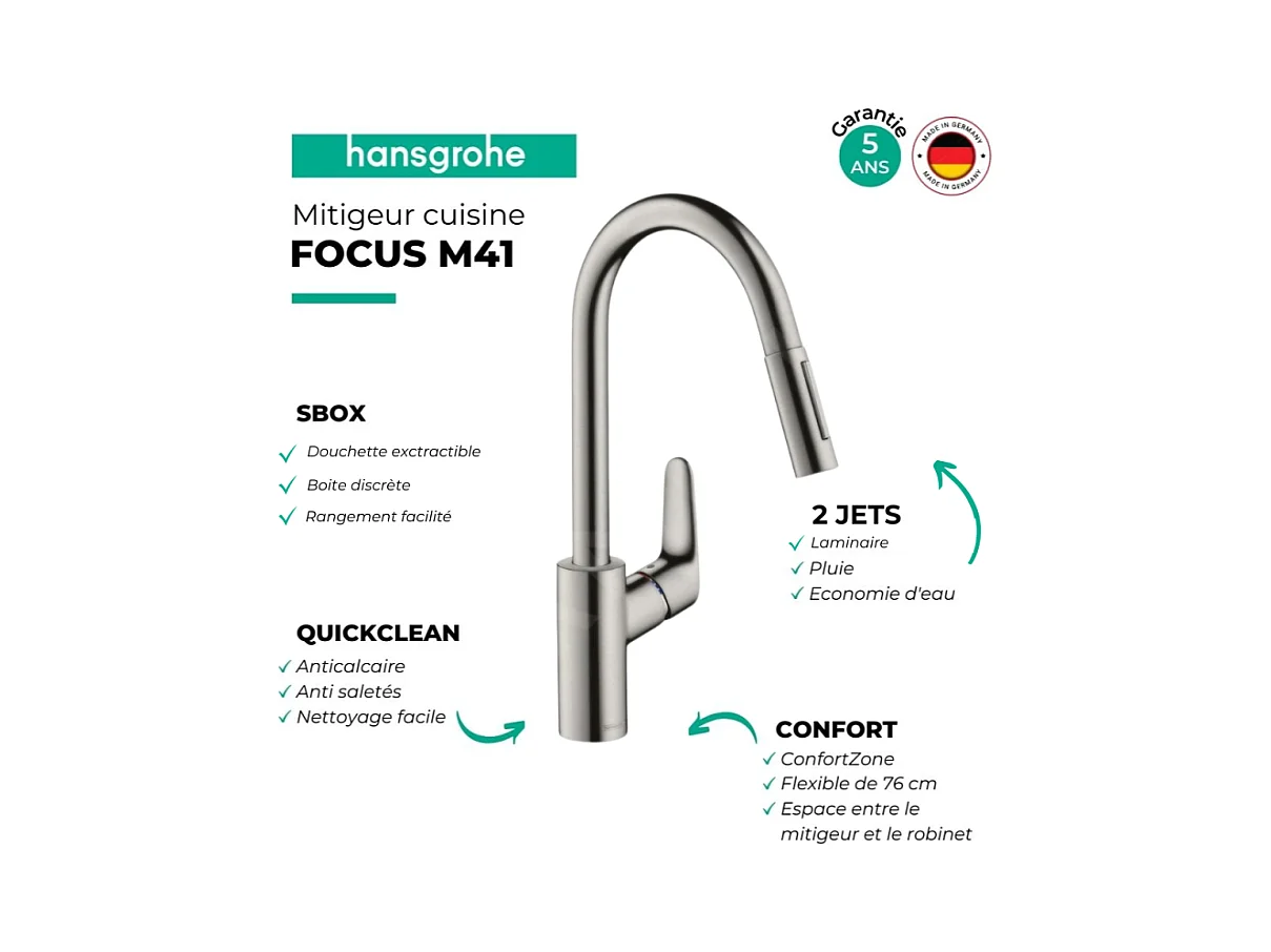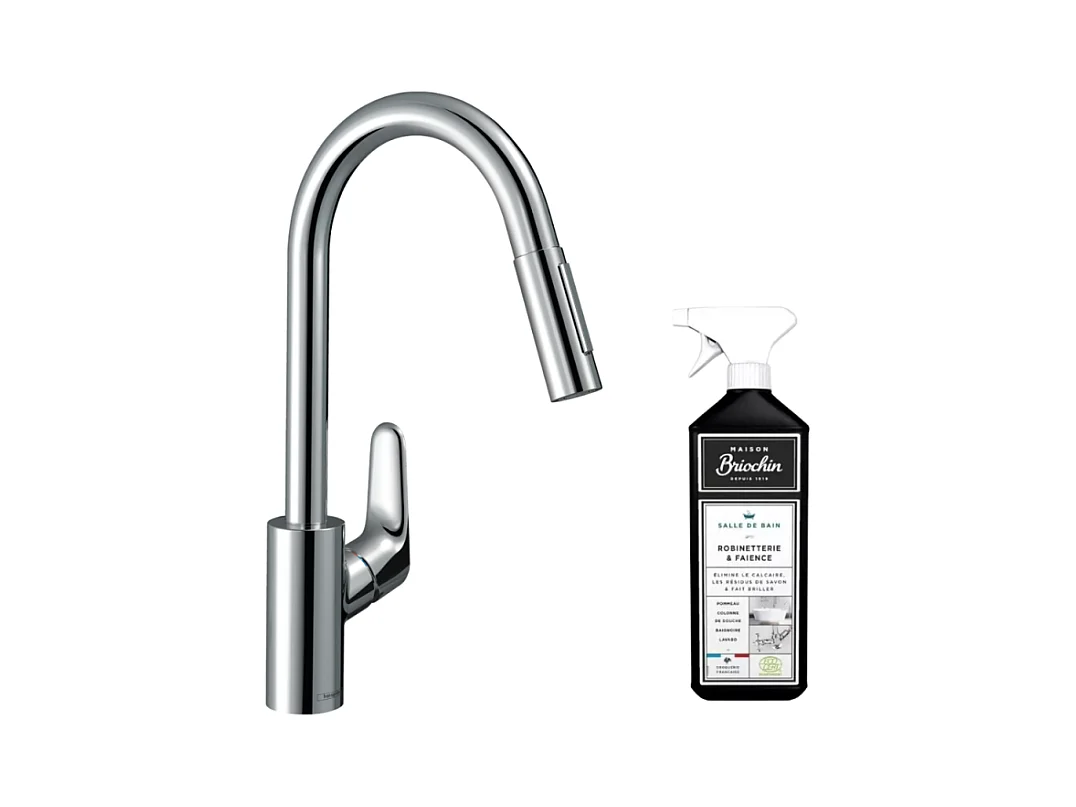 Robinet de cuisine avec douchette HANSGROHE Focus M41 240 sBox 2 jets chromé + nettoyant Briochin