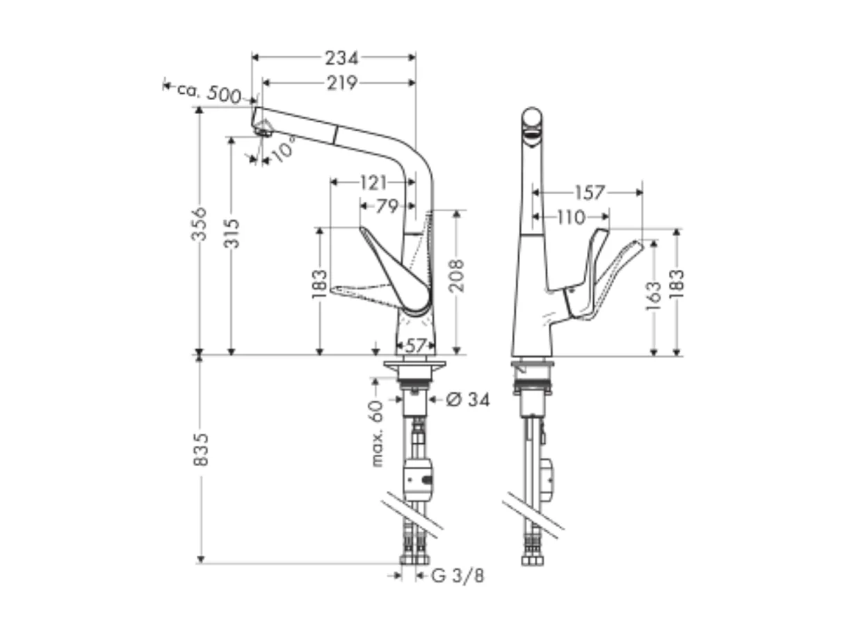 Robinet de cuisine avec douchette HANSGROHE Metris M71 320 chromé