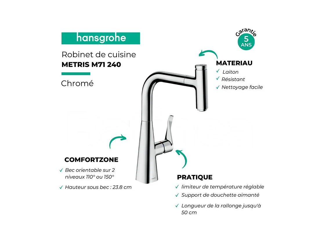 Robinet de cuisine avec douchette HANSGROHE Metris Select M71 240 chromé