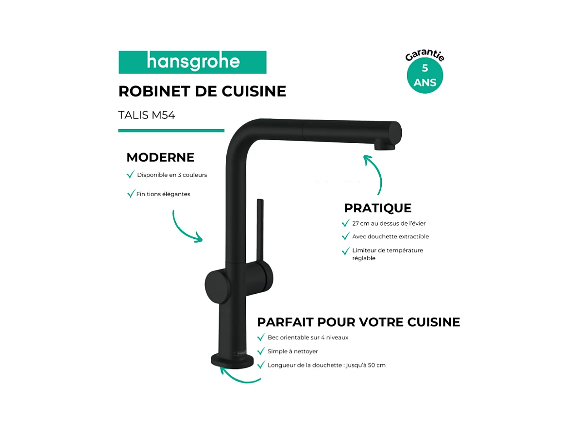Robinet de cuisine avec douchette HANSGROHE Talis M54 270 noir mat + nettoyant Briochin