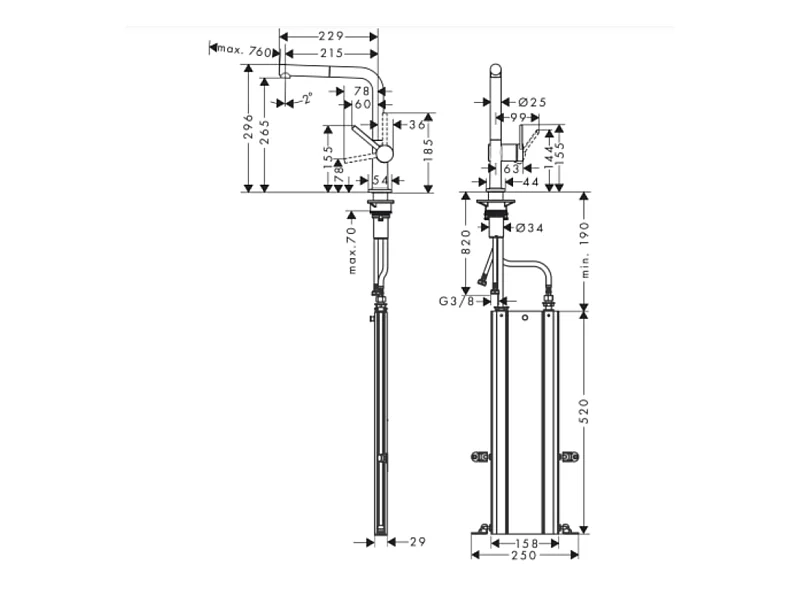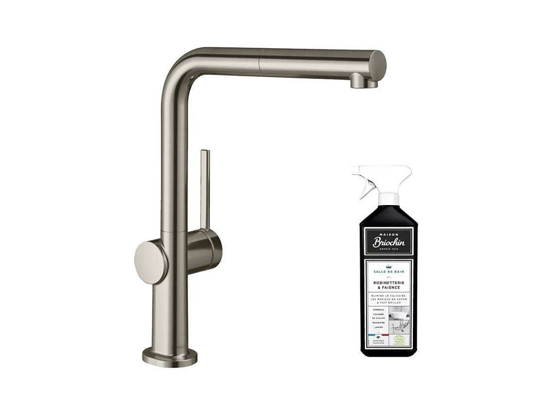 Robinet de cuisine avec douchette HANSGROHE Talis M54 270 sBox aspect acier inox + nettoyant Briochin