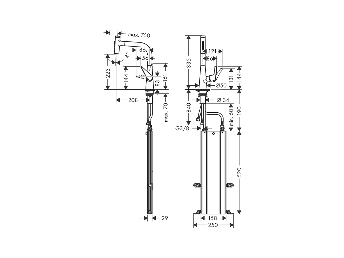 Robinet de cuisine avec douchette HANSGROHE Talis Select M51 220 sBox 2 jets aspect acier inox