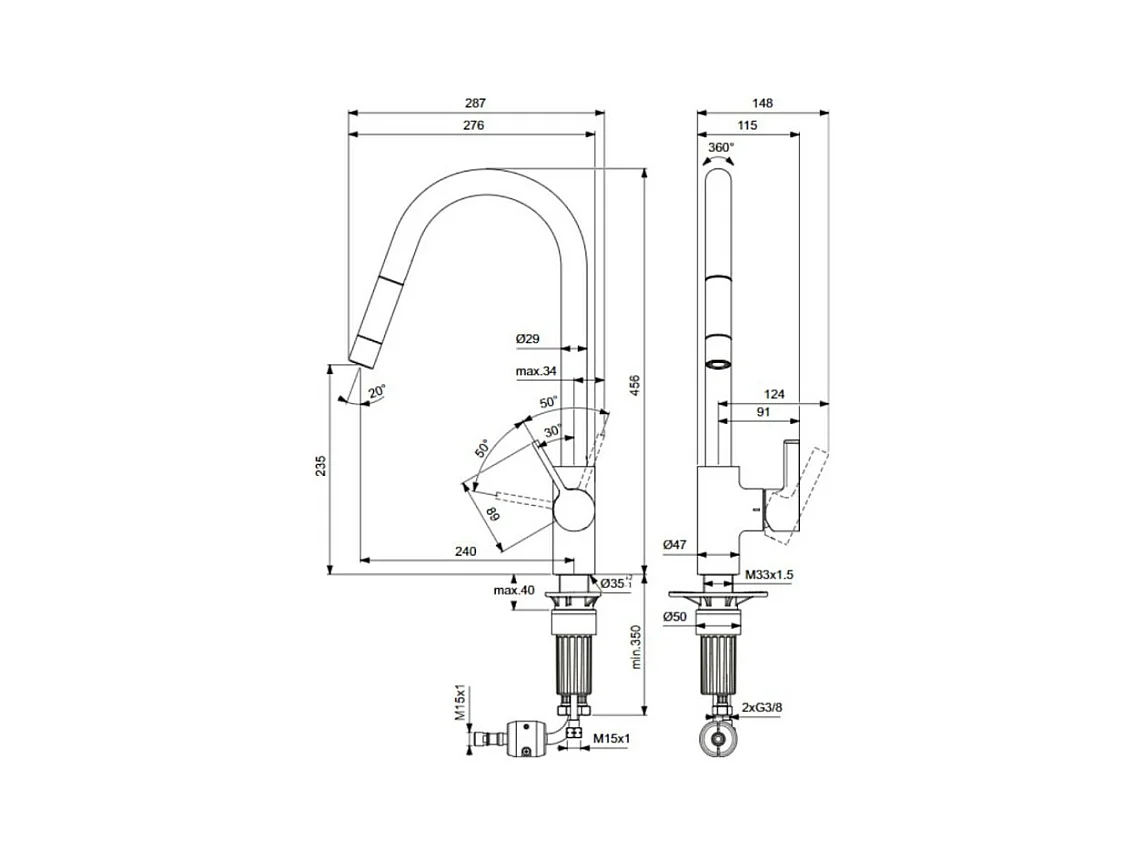 Robinet de cuisine avec douchette IDEAL STANDARD Gusto 2 jets or + nettoyant Briochin