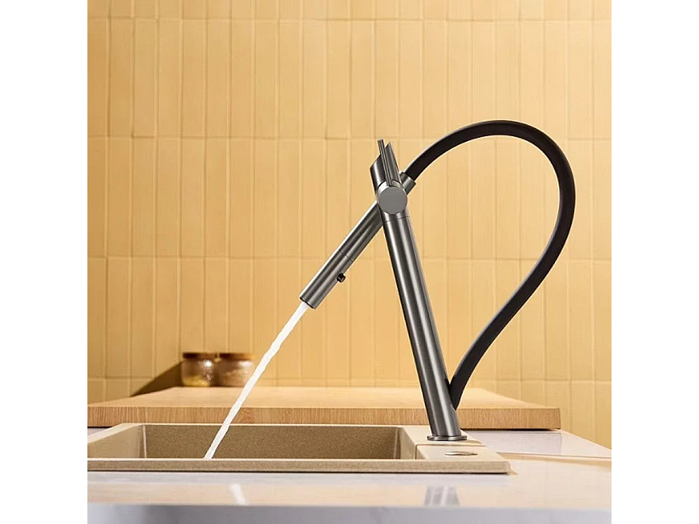 Mitigeur Évier Cuisine avec douchette extractible noir métal - Design moderne – SENA IMEX
