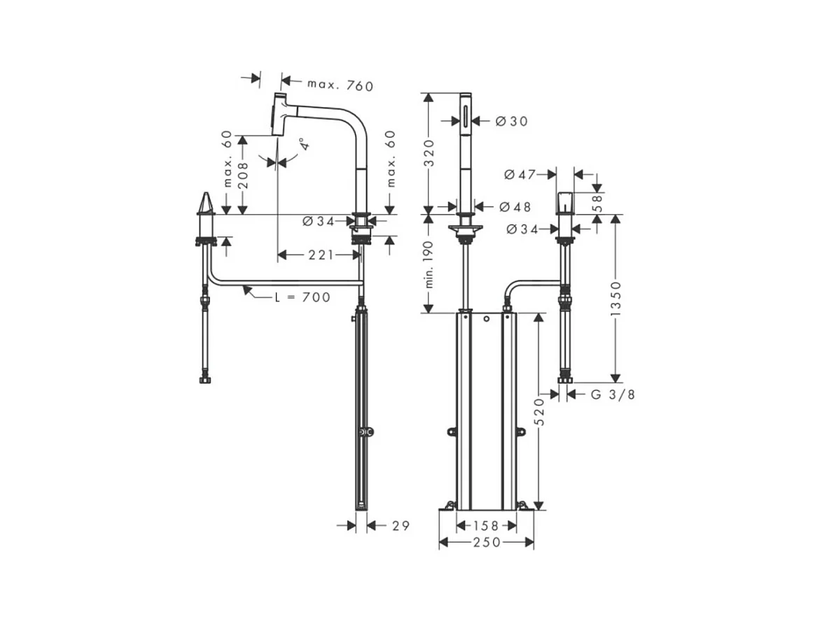 Robinet de cuisine encastré avec douchette HANSGROHE Metris Select M71 200 sBox 2 jets chromé