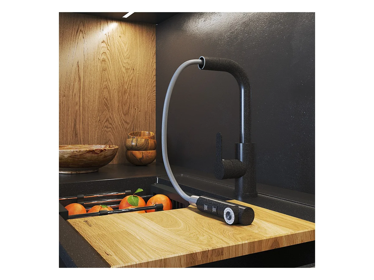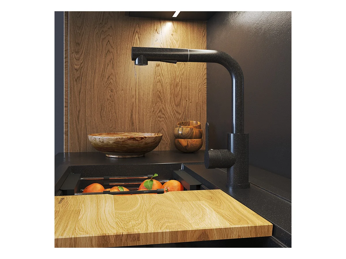 ROBINET DE CUISINE GRANIT NOIR ROBINET À BEC EXTRACTIBLE POUR ÉVIER EBRO