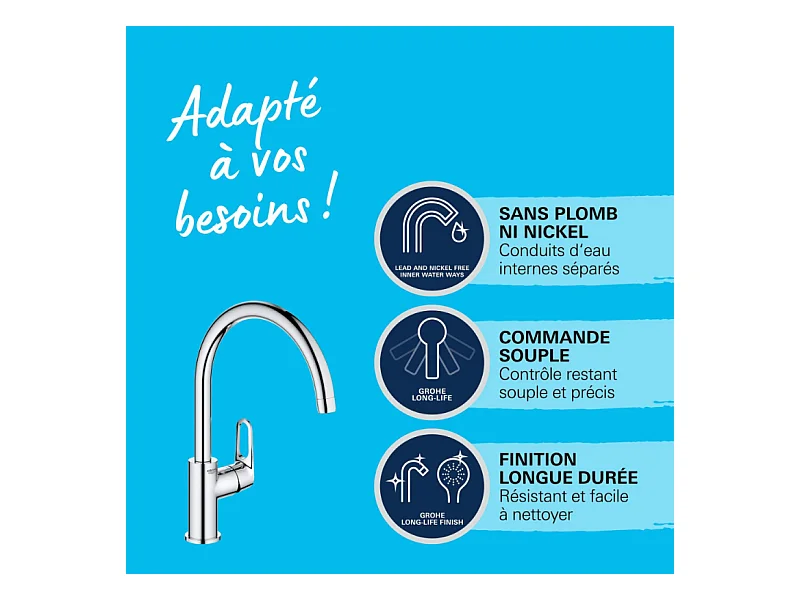 robinet mitigeur cuisine GROHE Bauloop bec haut + produit entretien