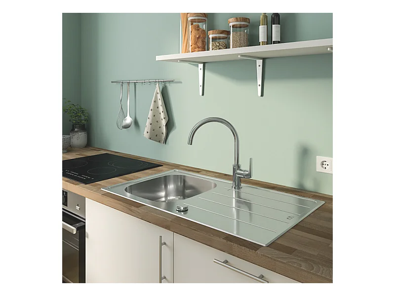 Robinet de cuisine monocommande GROHE Start 2021 chromé + nettoyant GrohClean
