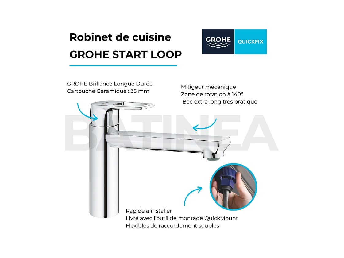 Robinet de cuisine GROHE Start Loop bec long chromé