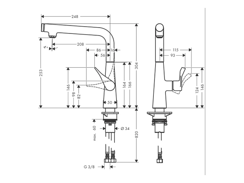 Robinet de cuisine HANSGROHE Metris Select M71 260 aspect acier inox