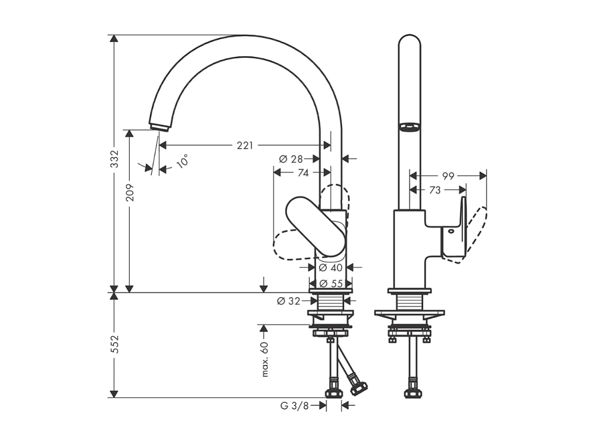 Mitigeur cuisine JACOB DELAFON Cleo, Bec haut, chrome
