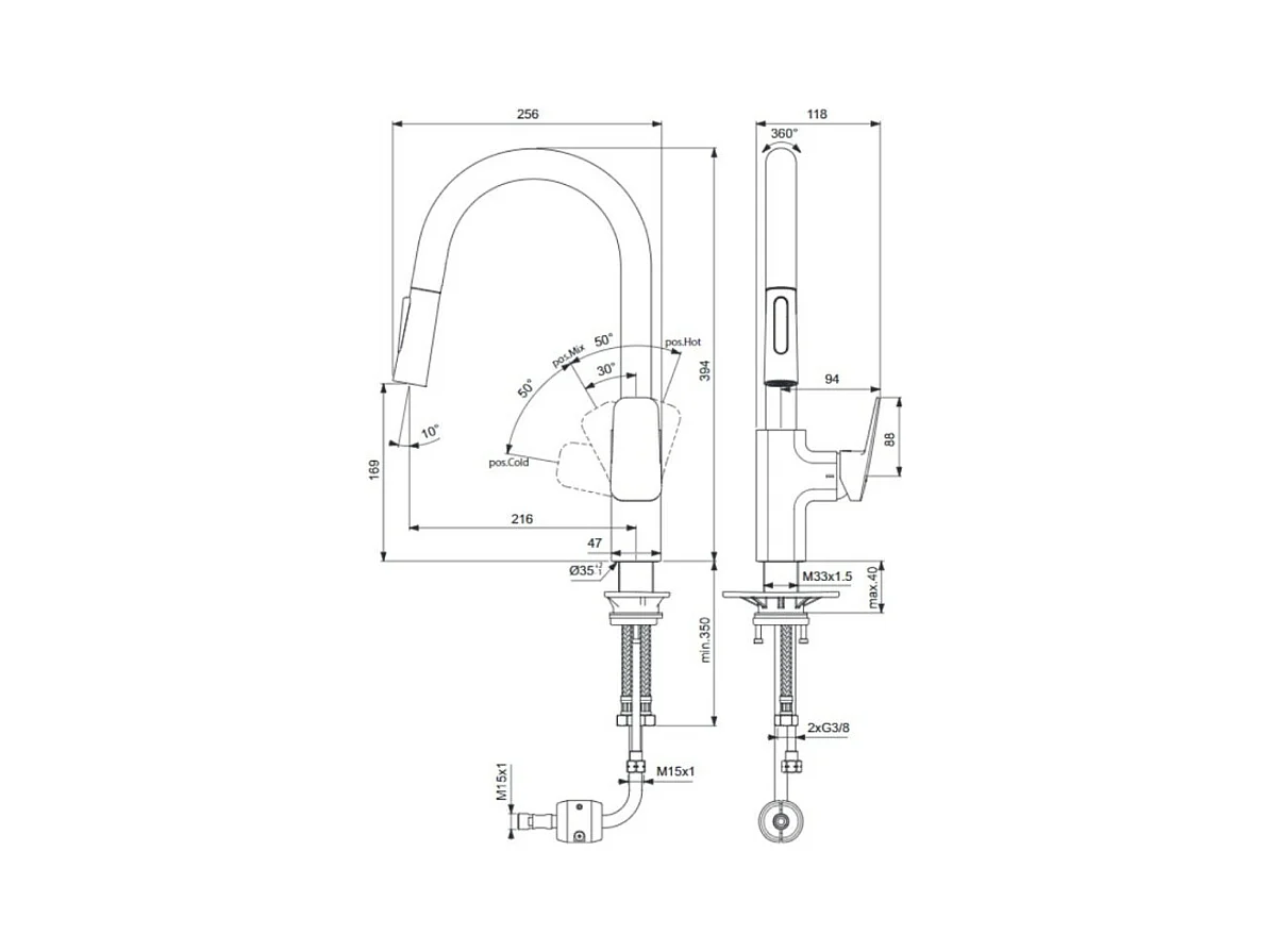 Robinet de cuisine IDEAL STANDARD Blue Start douchette extractible + Nettoyant