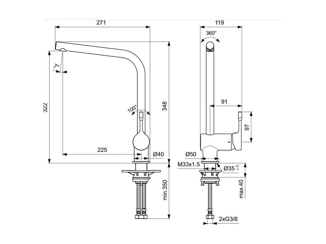Robinet de cuisine IDEAL STANDARD Ceralook bec L gris orage + nettoyant Briochin