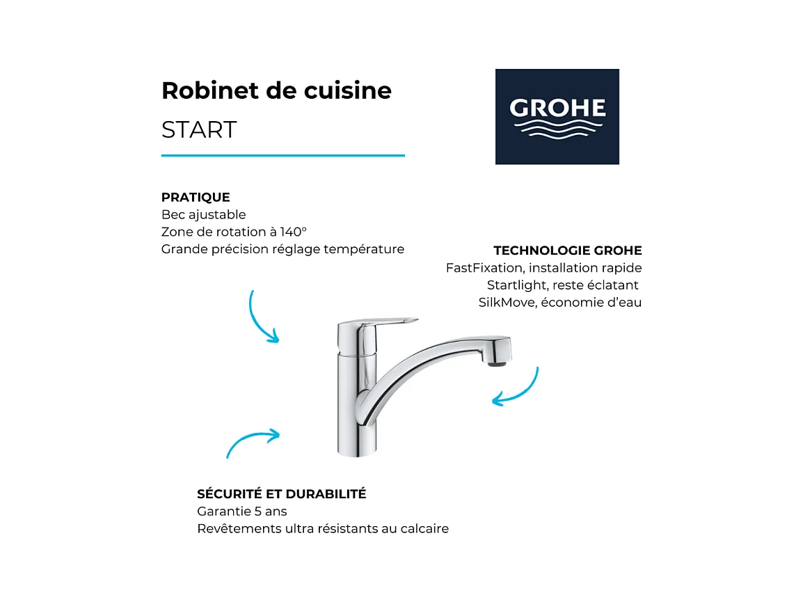 GROHE Mitigeur monocommande Evier Start Chrome 31138002