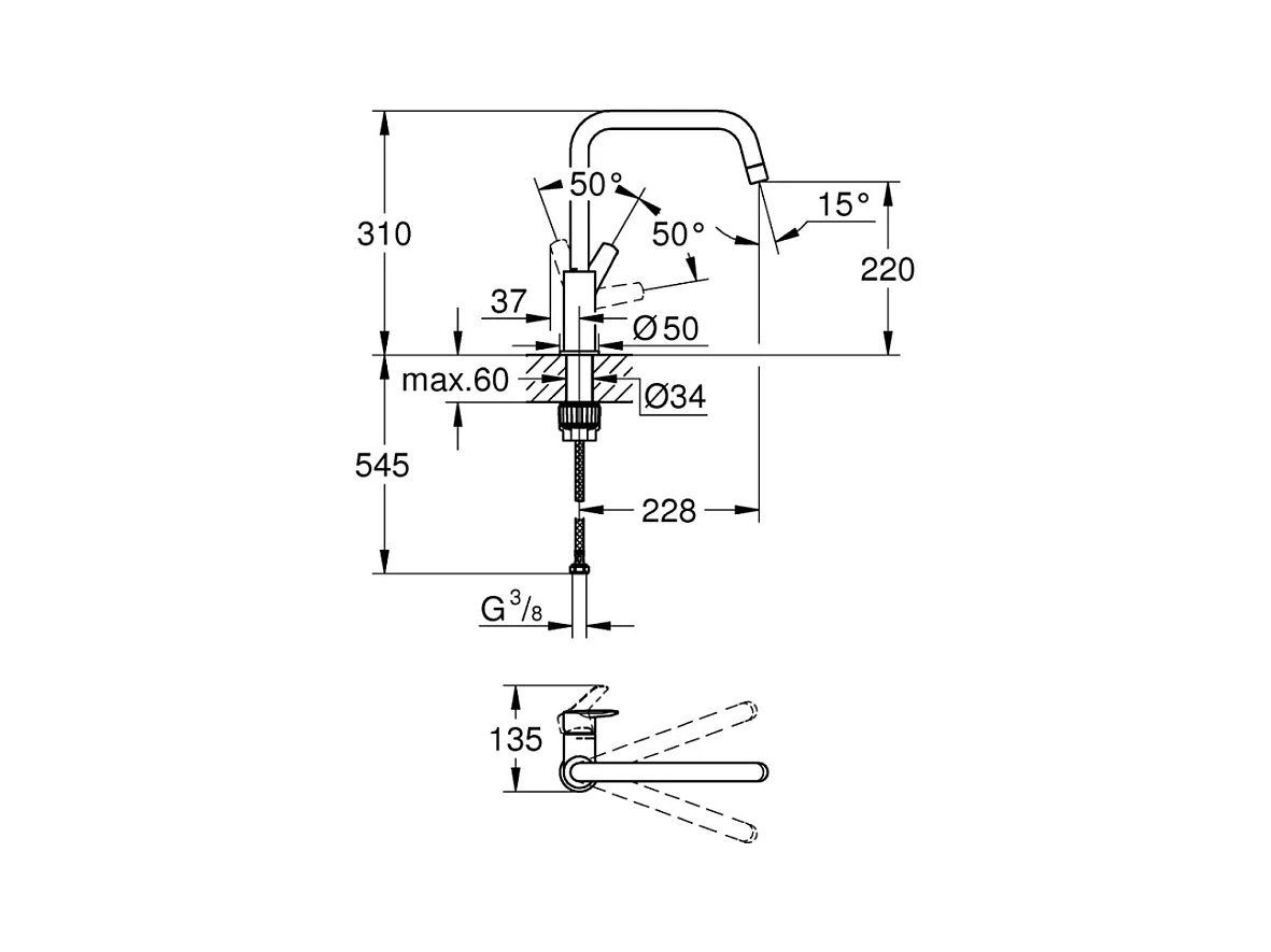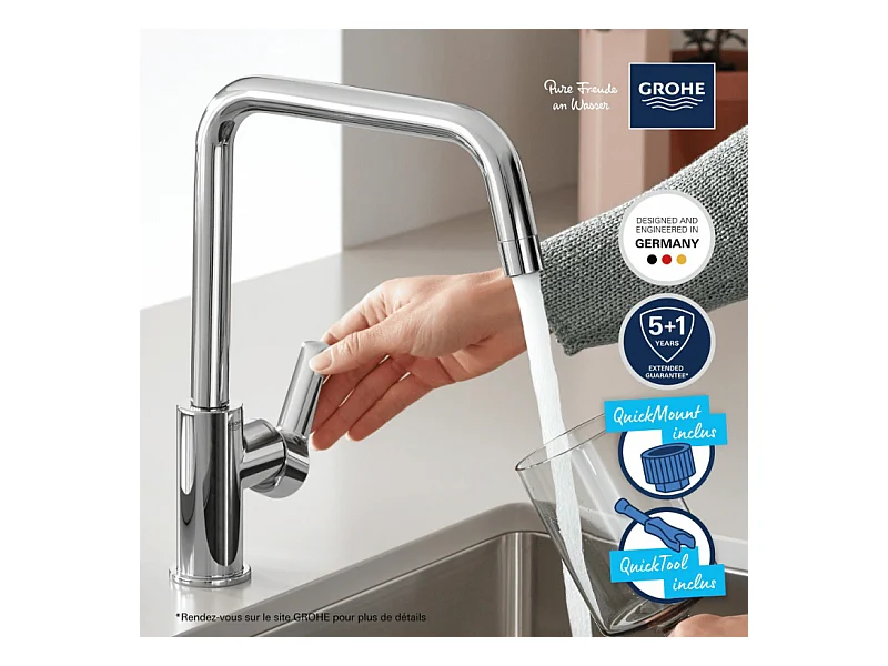Robinet de cuisine monocommande GROHE Start 2021 chromé + nettoyant GrohClean