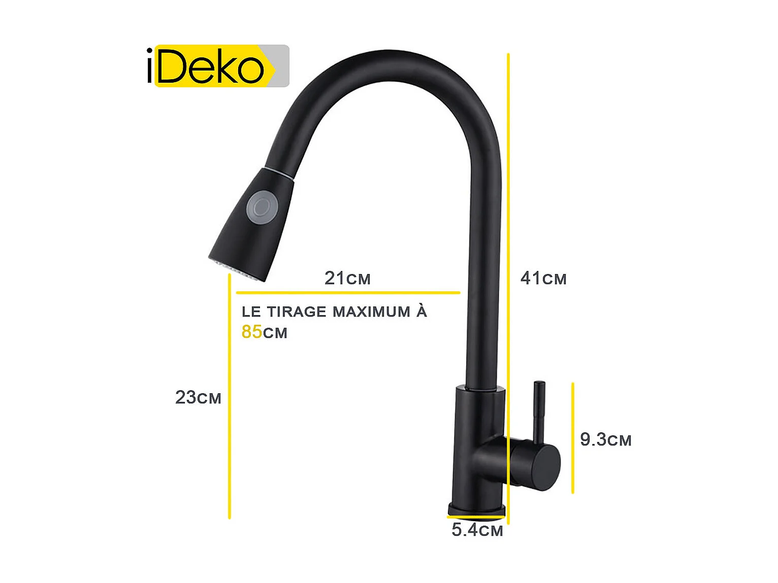 Robinet de cuisine multifonction noir moderne à 2 jets gamme standard