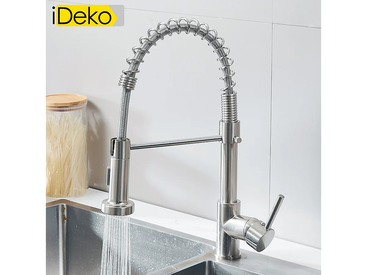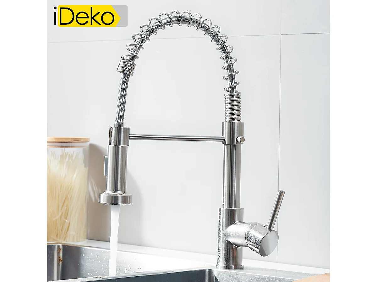 Robinet de cuisine multifonction Pro à 2 jets rotation à 360 degrés nickel moderne