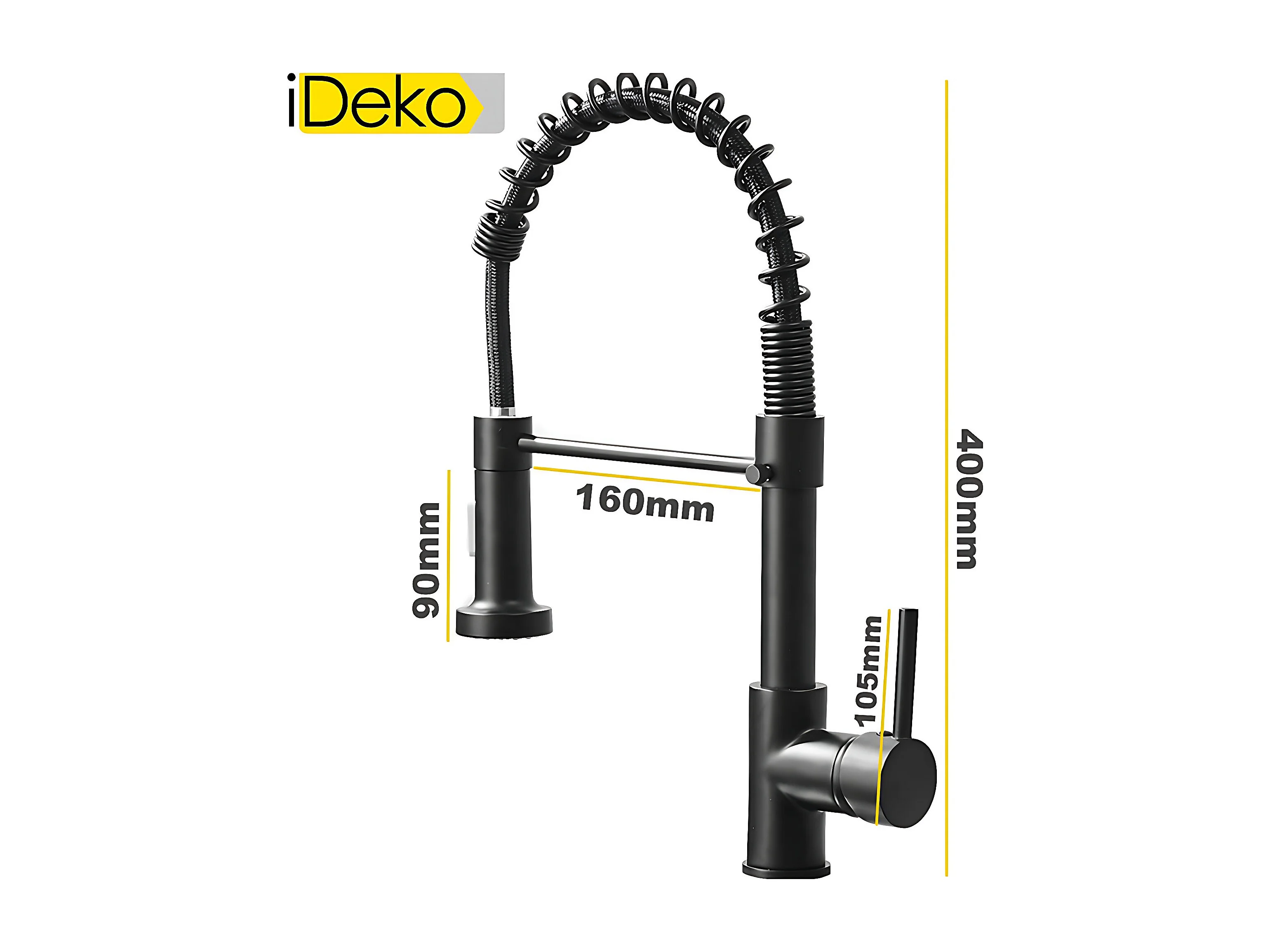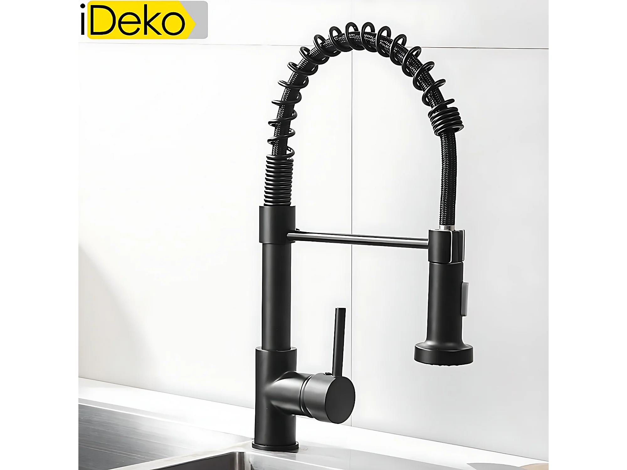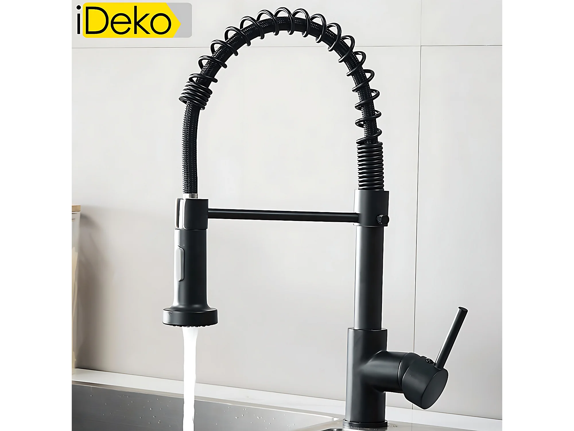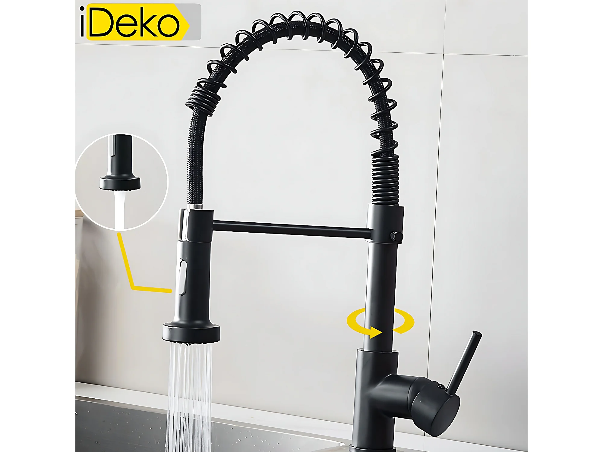 Robinet de cuisine multifonction Pro à 2 jets rotation à 360 degrés noir moderne