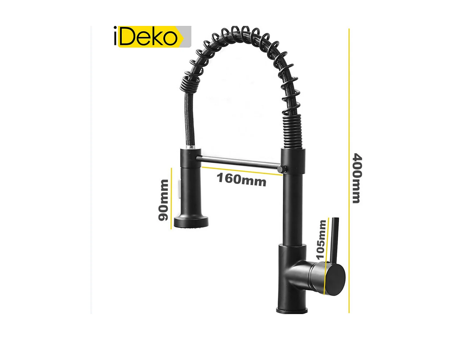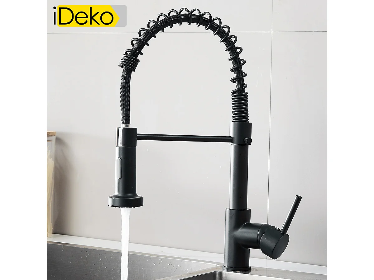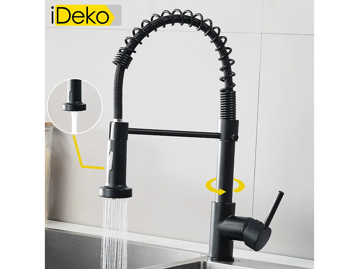 Robinet de cuisine multifonction Pro à 2 jets rotation à 360 degrés noir moderne