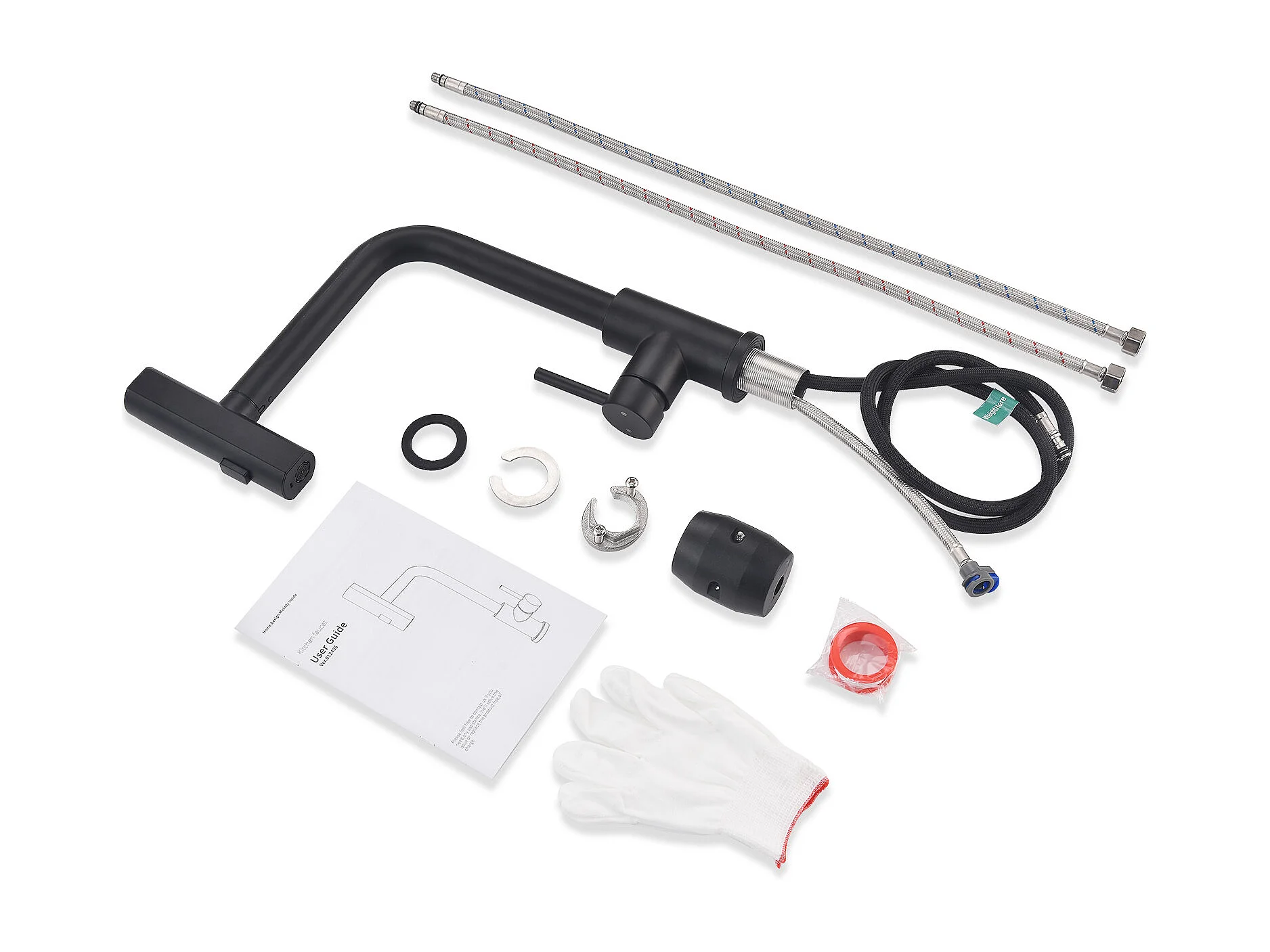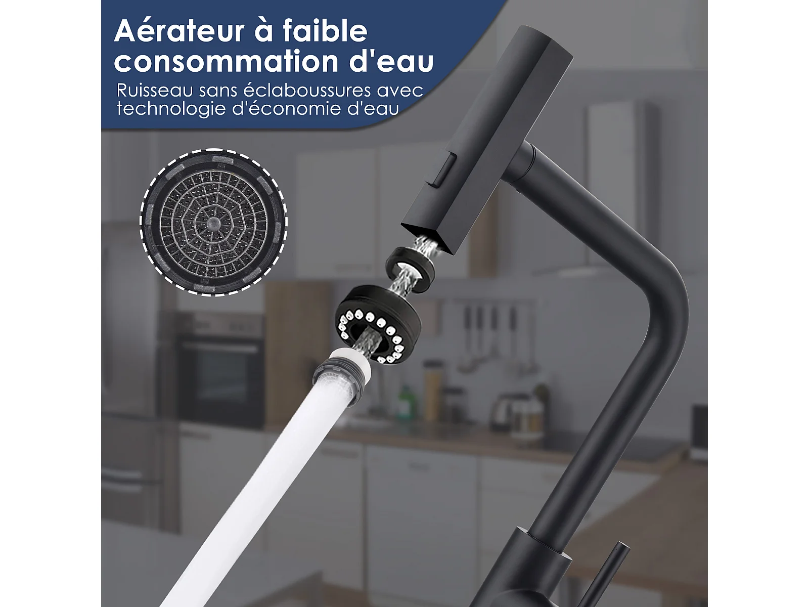 Robinet de Cuisine Noir avec Douchette Extracible Mitigeur d'Évier à 3 Modes de Pulvérisation Robinet de Cuisine Monocommande, Rotatif à 360 °