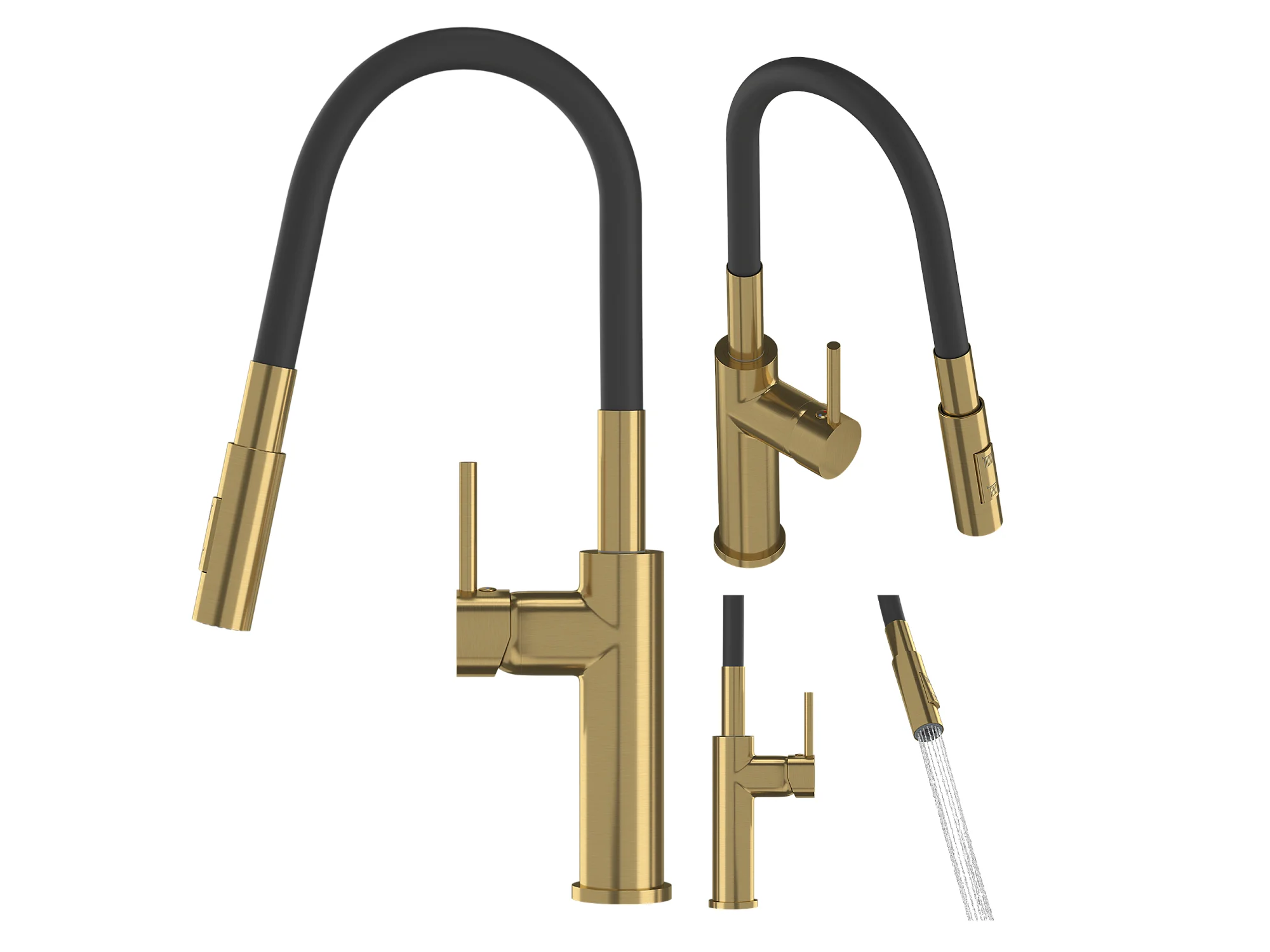 MITIGEUR DE CUISINE BEC EXTRACTIBLE OR ROBINET EN ACIER LOSETO BRUSHED GOLD