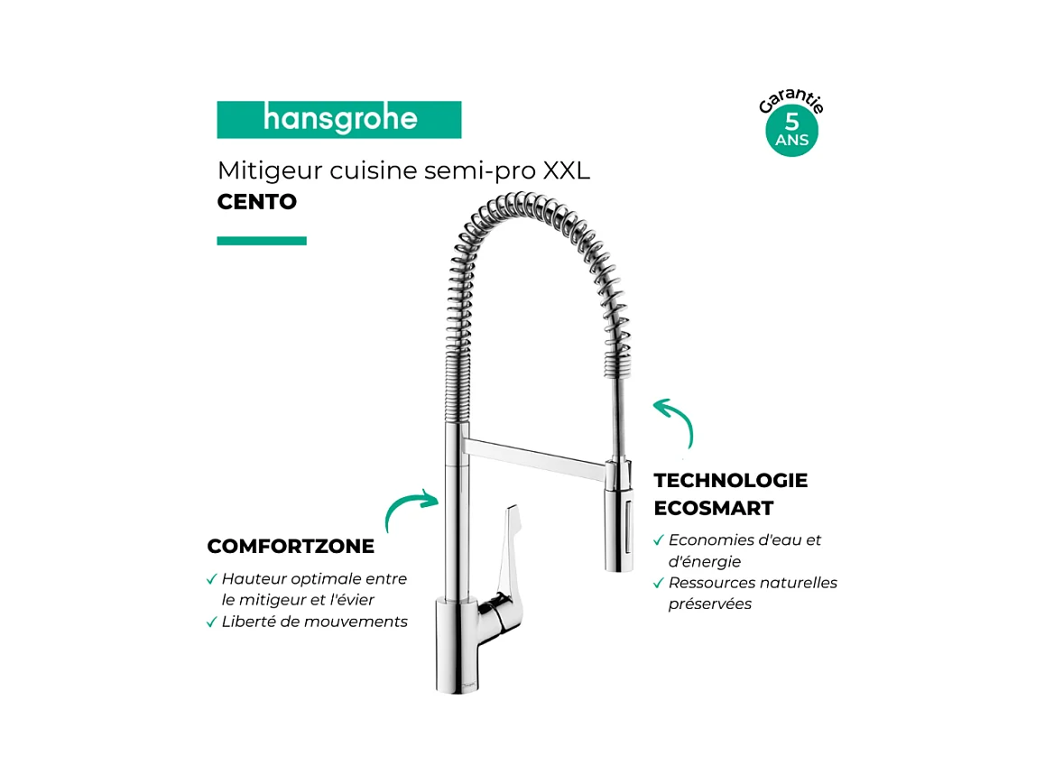 Robinet de cuisine semi-pro XXL HANSGROHE Cento 2 jets chromé