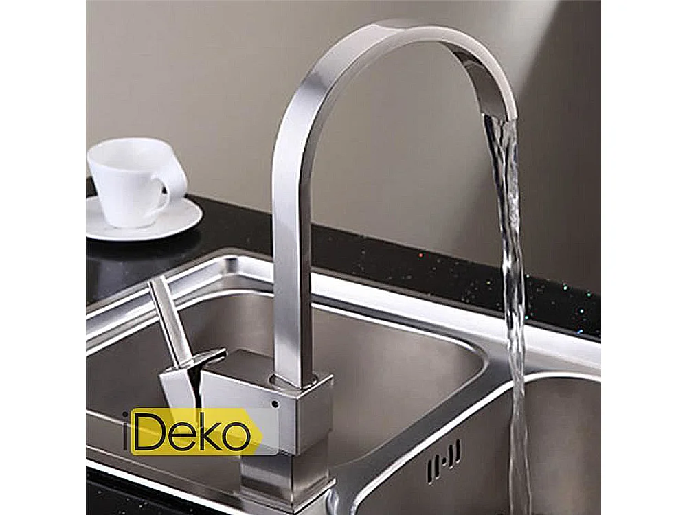 Robinet de cuisne en laiton Mitigeur d’évier cuisine brossé nickel Rotation à 360° facile