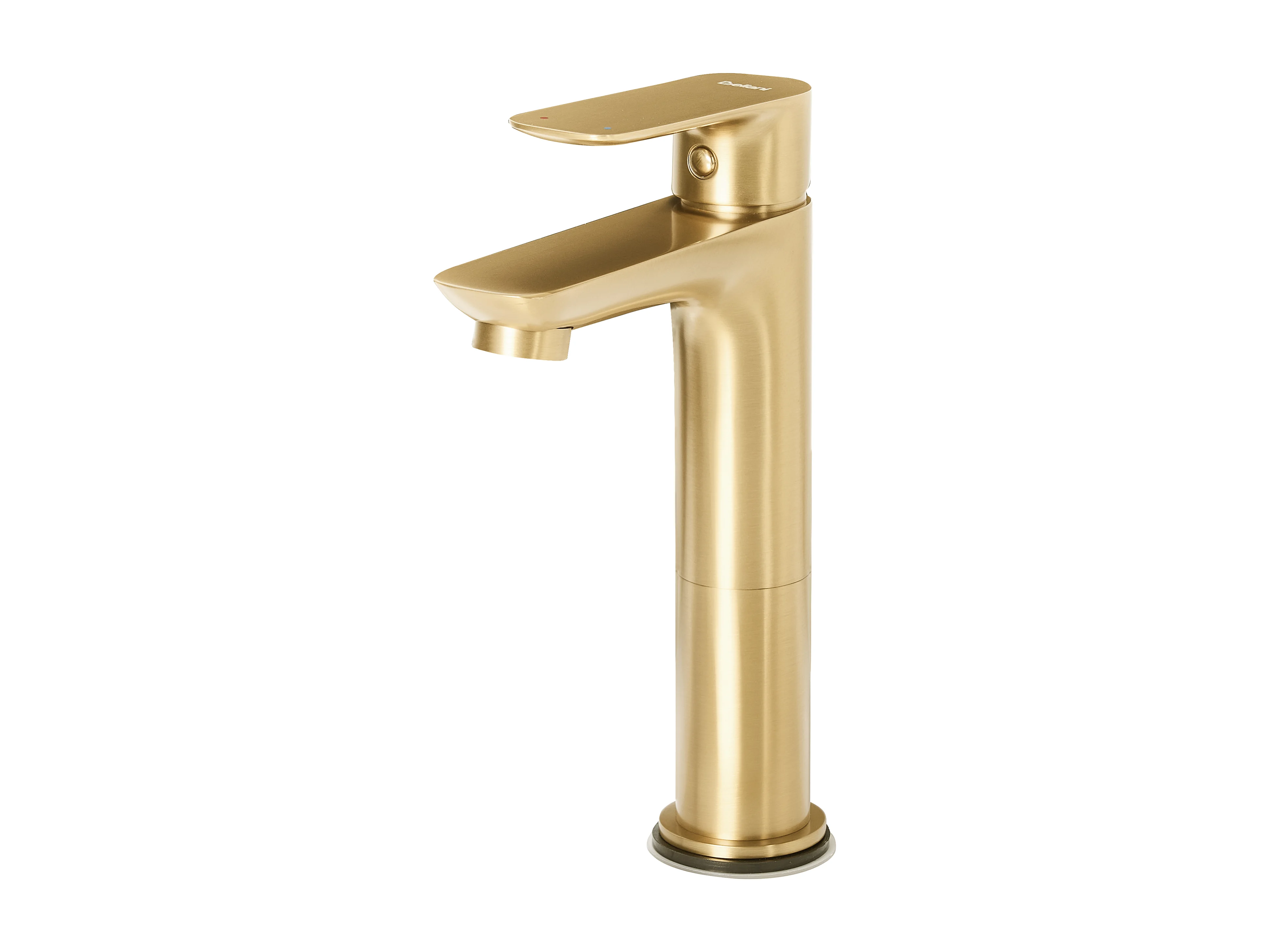 Mitigeur Lavabo Salle de Bain or brossé – Bec Haut Anti-Calcaire – Design Moderne - OLIMPO IMEX