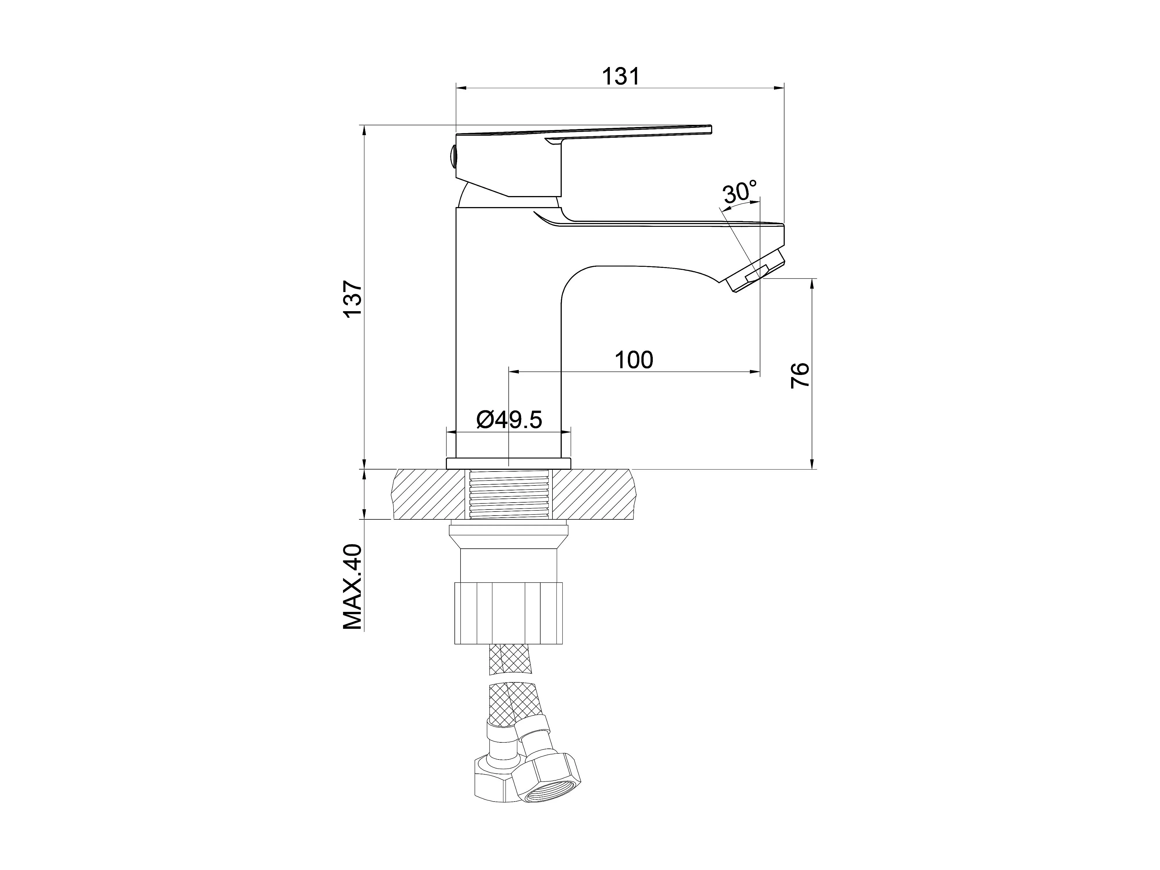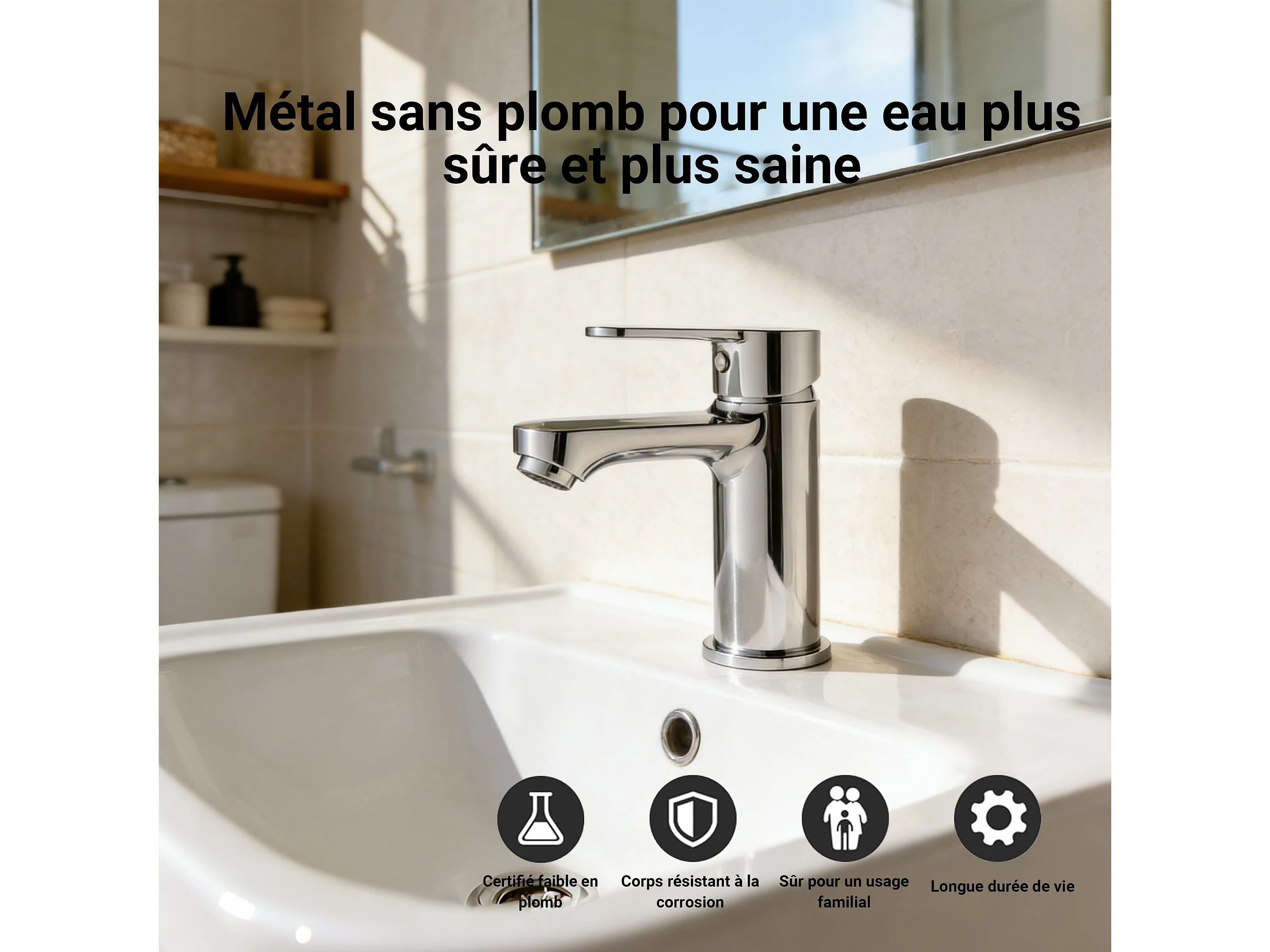 Robinet de lavabo en zinc alliage, mitigeur monocommande avec bec hauteur 76 mm, robinet de salle de bain chromé
