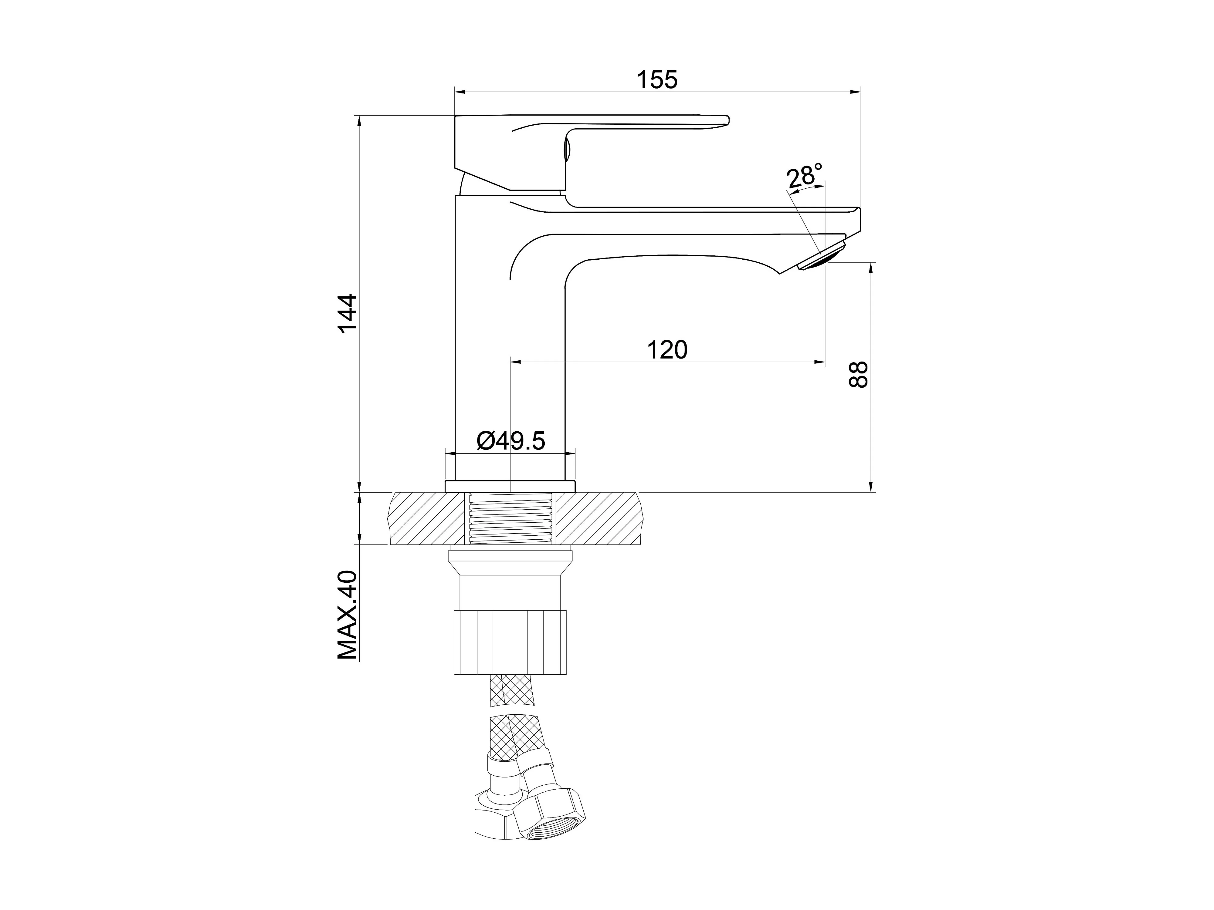 Robinet de lavabo en zinc alliage, mitigeur monocommande avec bec hauteur 88 mm, robinet de salle de bain chromé