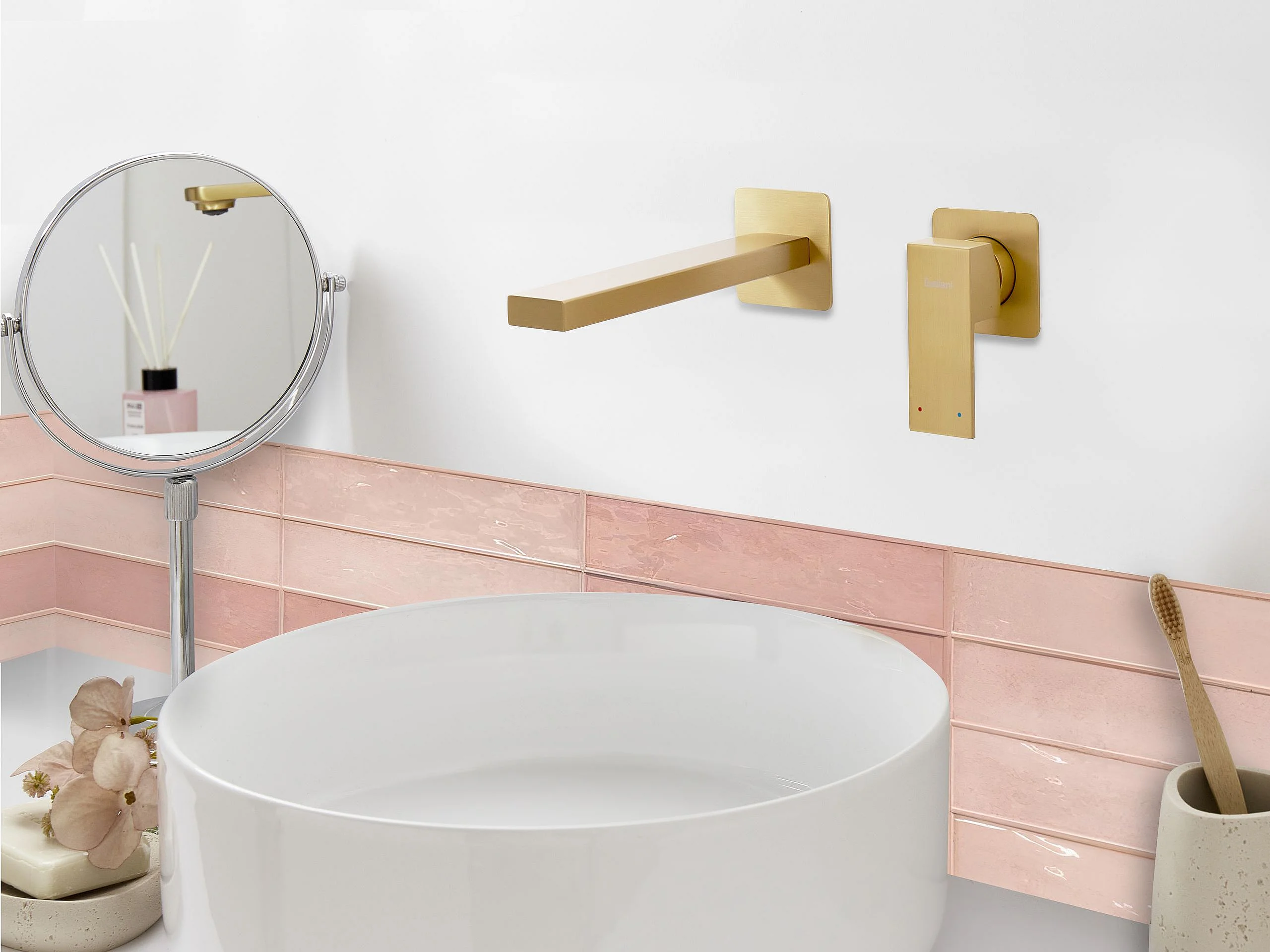 Robinet de lavabo mural ISHINCA Laiton Doré