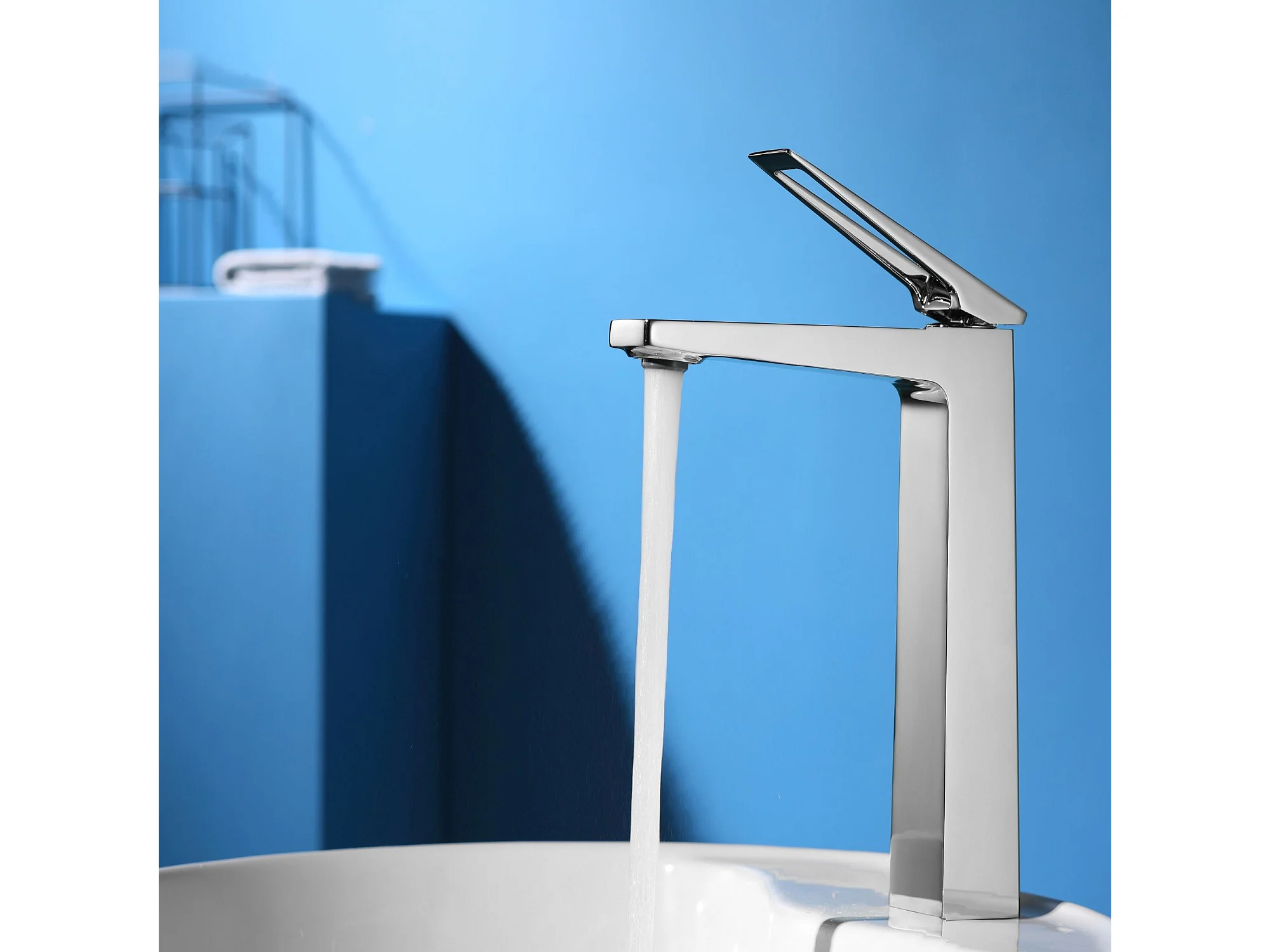 Mitigeur Lavabo Salle de Bain acier inoxydabke – Bec Haut Anti-Calcaire – Design Moderne - DELOS IMEX