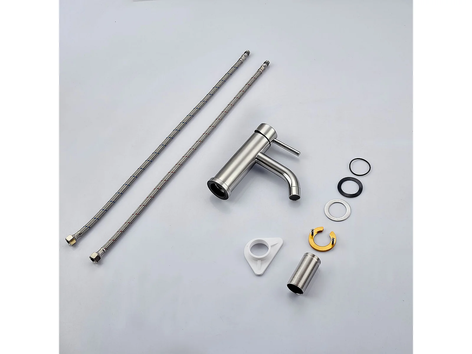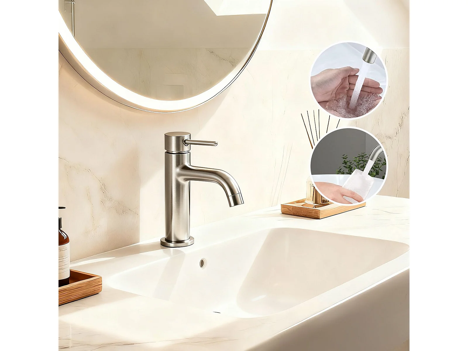 Robinet de Salle de Bain Bas en Acier Inoxydable 304 Robinet Lavabo, Mitigeur Monocommande Finition Brossée