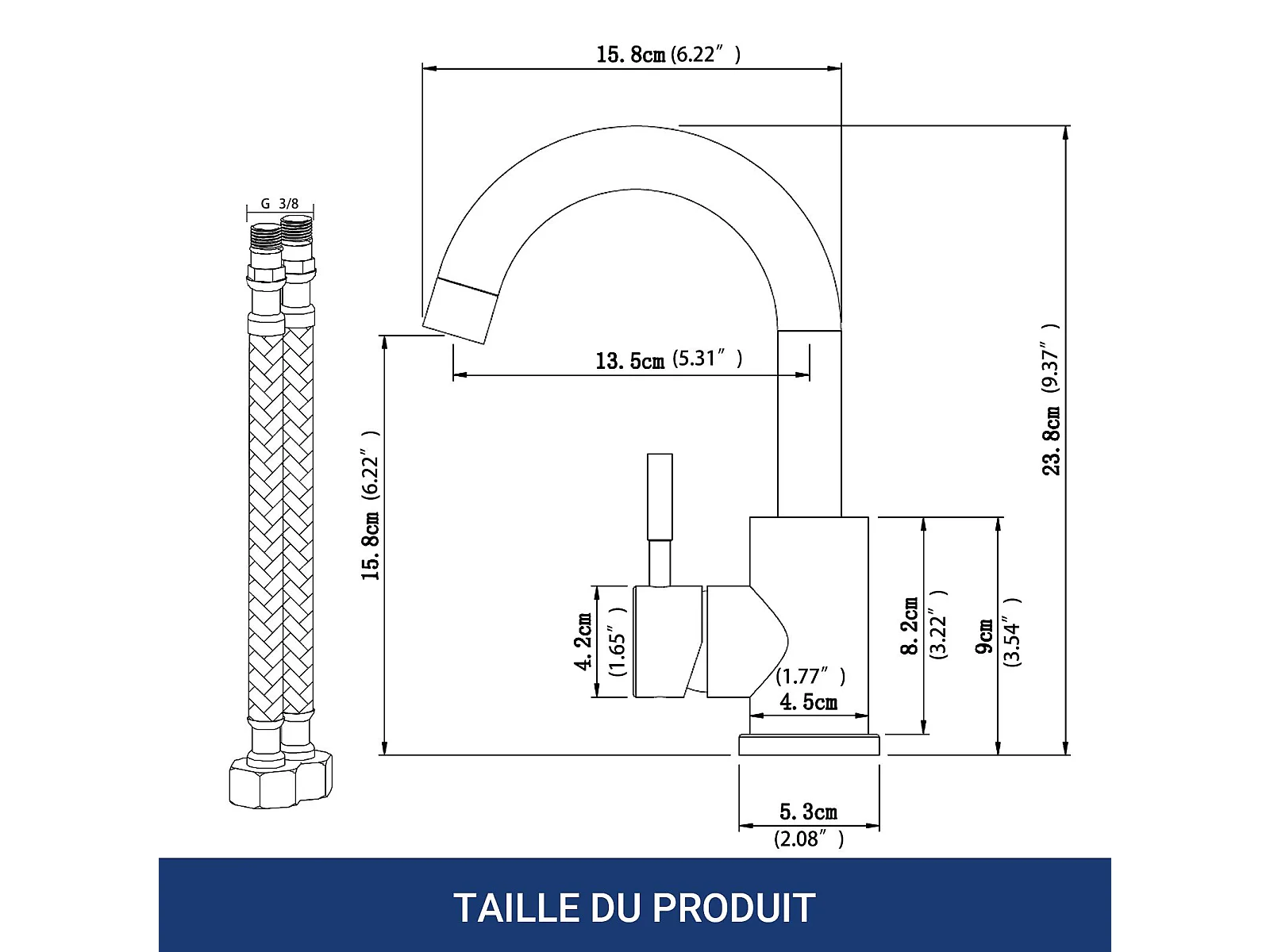 Robinet de Salle de Bain Haut en Acier Inoxydable 304 Robinet Lavabo 158mm de Hauteur, Mitigeur Monocommande Finition Chromée