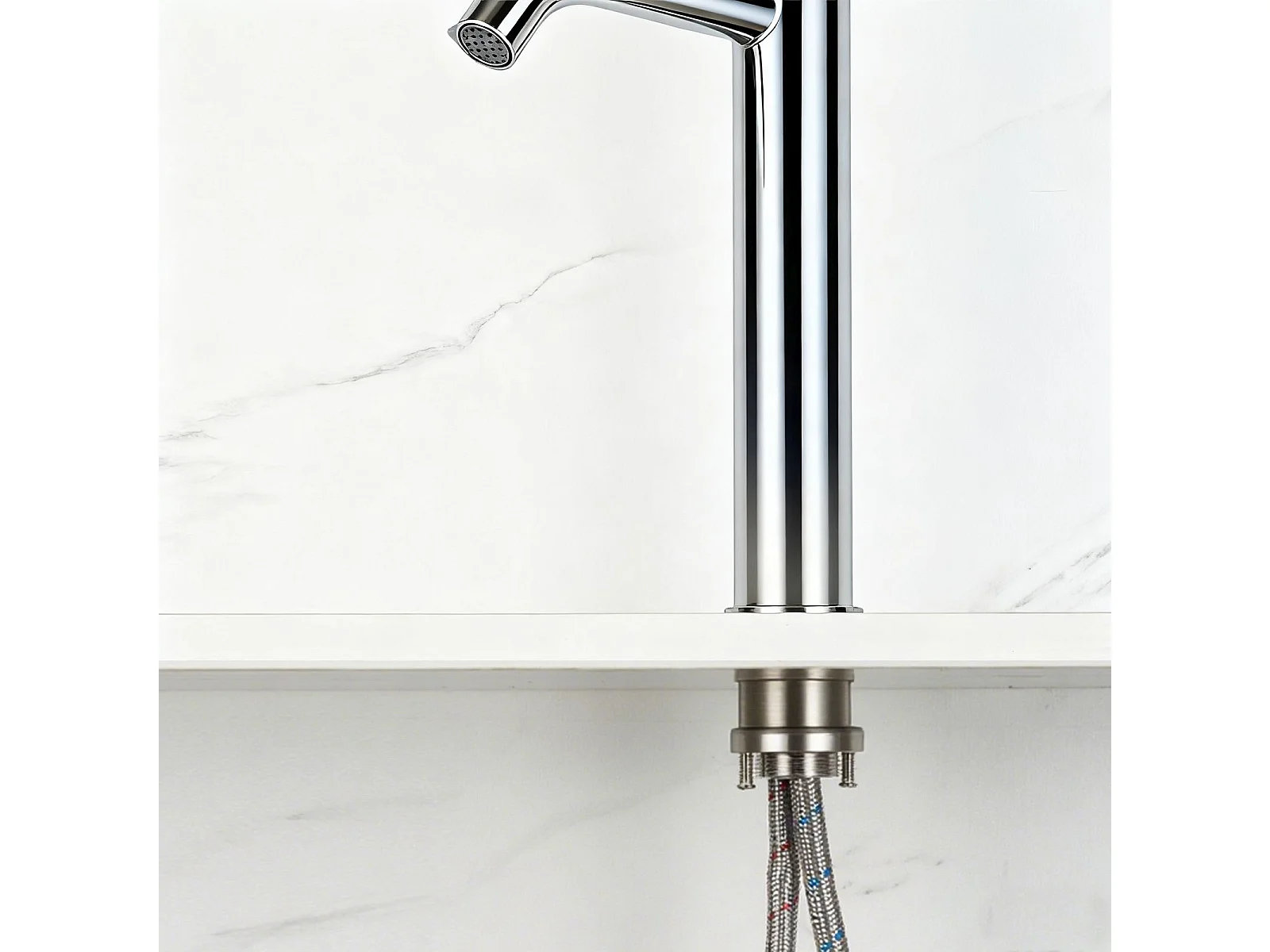 Robinet de Salle de Bain Haut en Acier Inoxydable 304 Robinet Lavabo 195mm de Hauteur Mitigeur Monocommande Finition Chromée