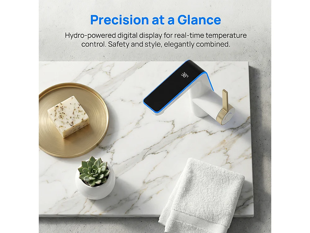 Robinet de salle de bain LED digital pour lavabo monocommande style technologique Blanc