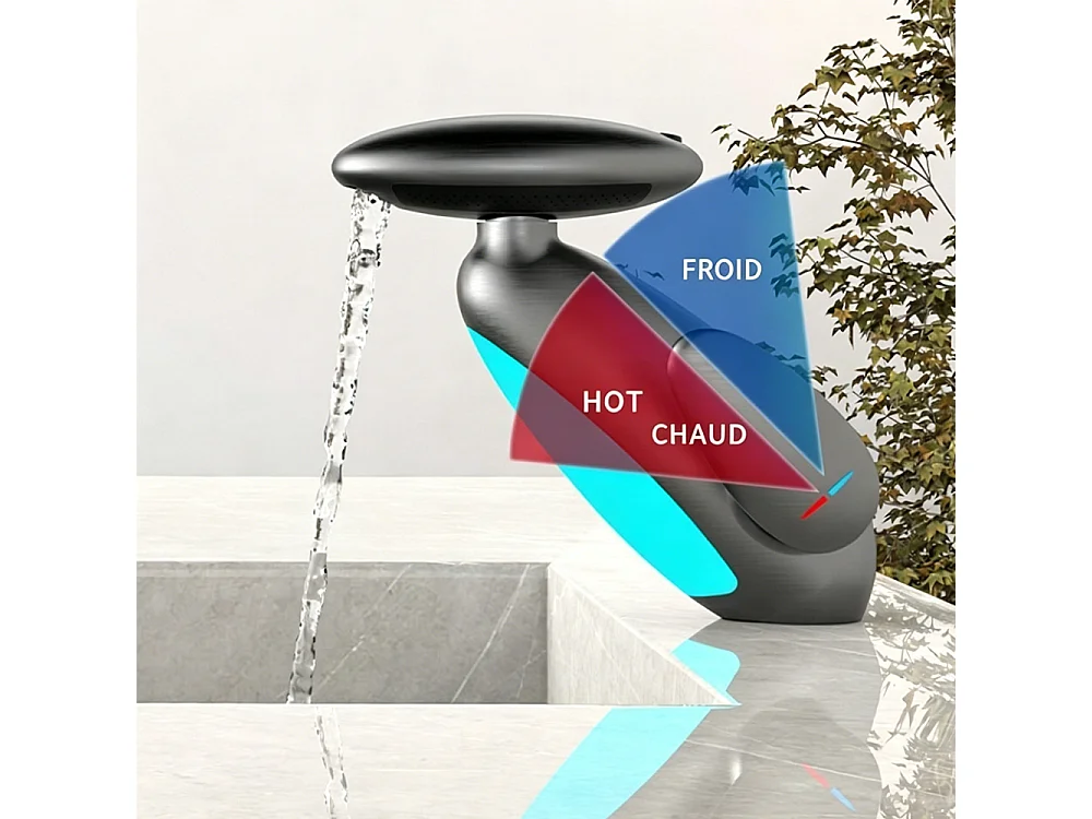Robinet de salle de bain LED pour lavabo monocommande 4 jets réglable longueur style planète Noir