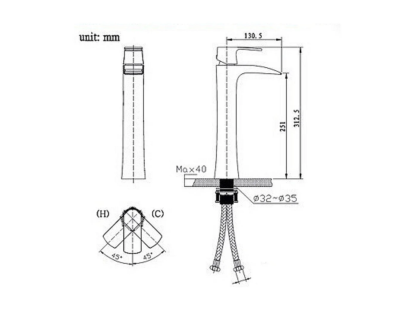 Robinet salle de bain Robinet de lavabo haut noir cascade