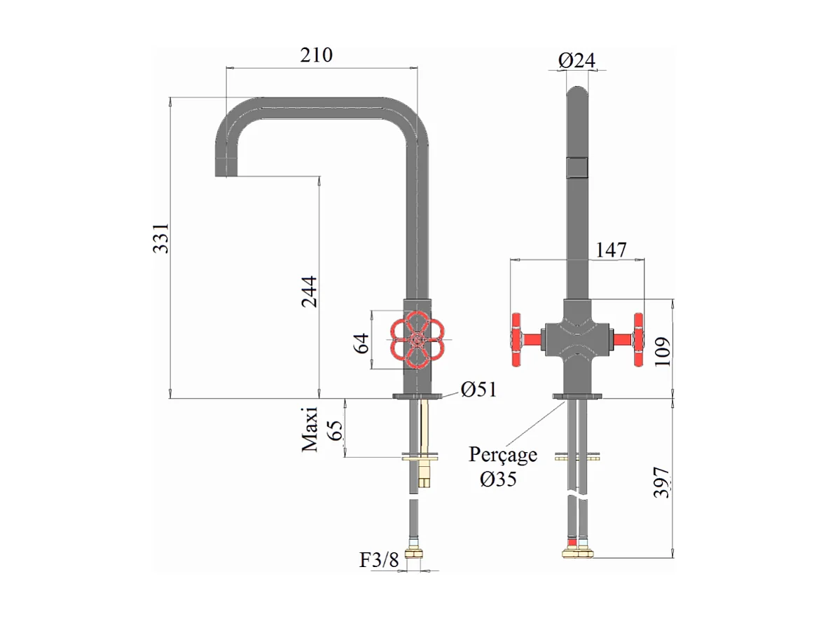 robinet evier cuisine PAINI Induss Bec Haut