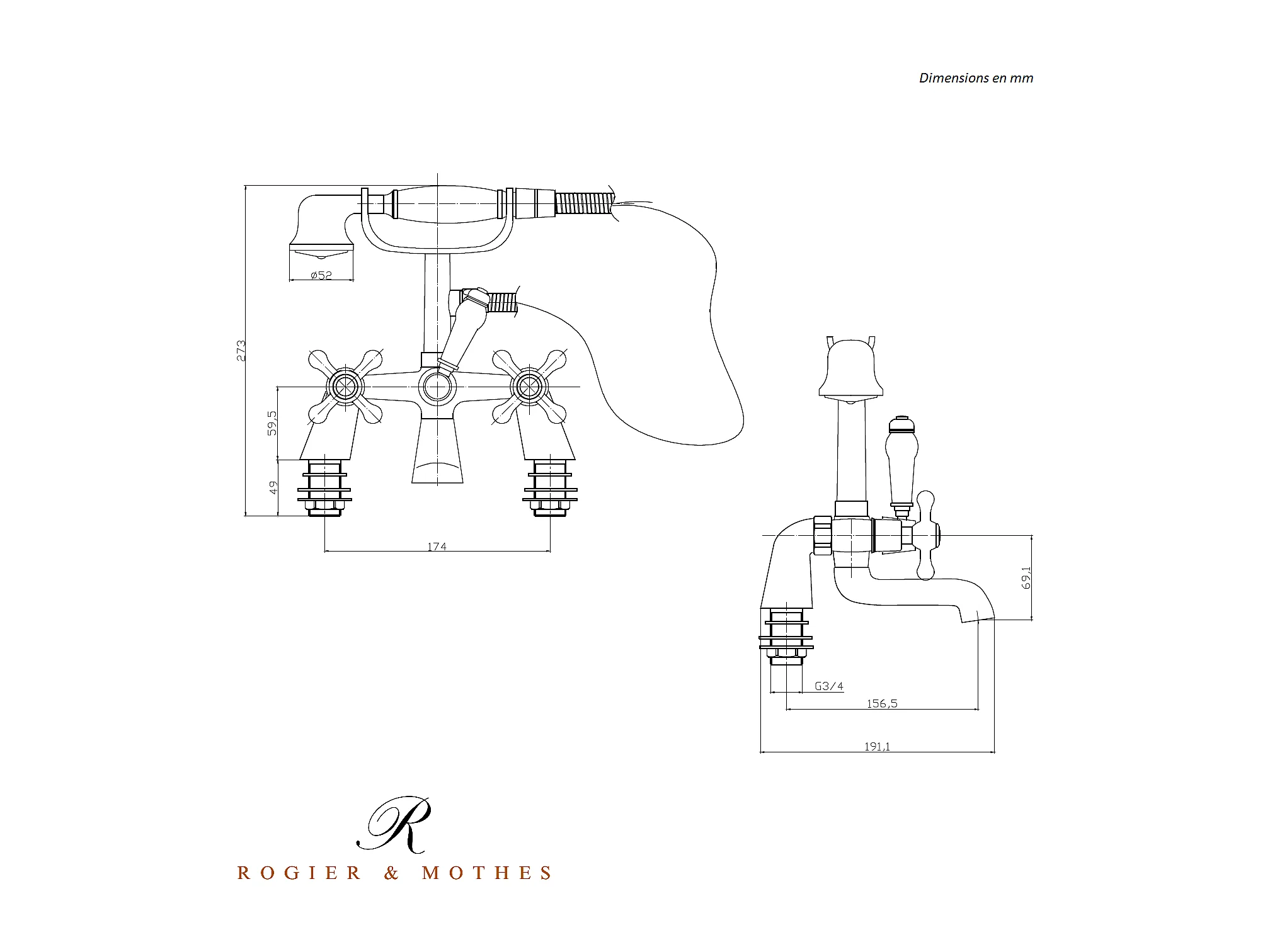Robinet mélangeur baignoire rétro sur pieds VICTORIA