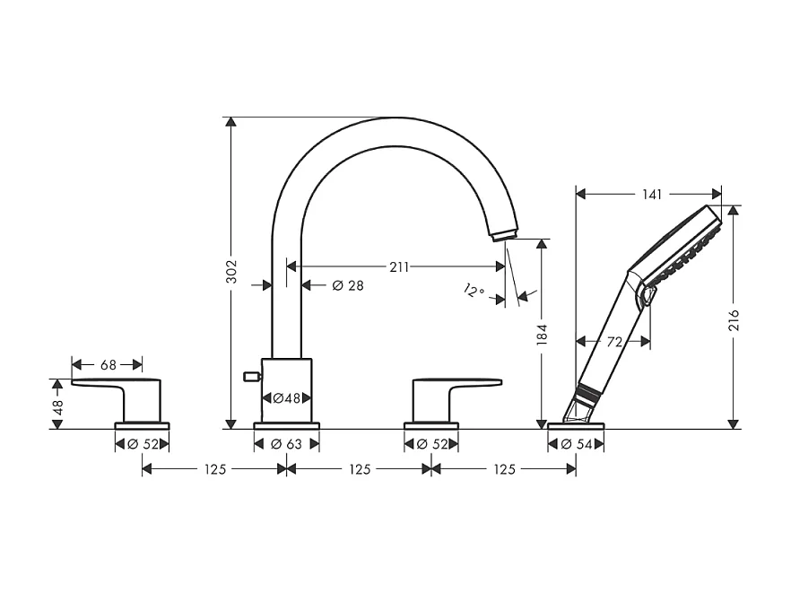 Mélangeur bain douche 4 trous HANSGROHE Vernis Blend chromé